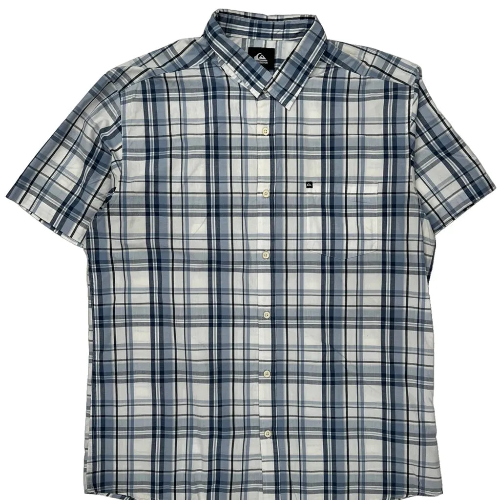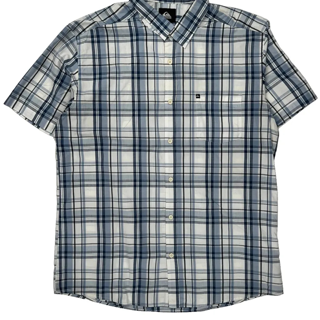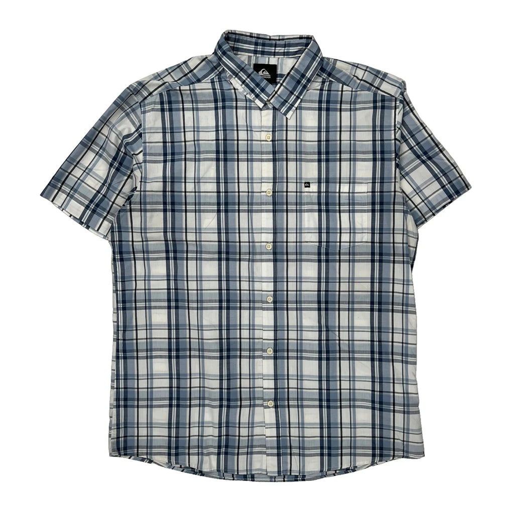 Quiksilver Checked Short Sleeve Shirt - XL Blue Cotton