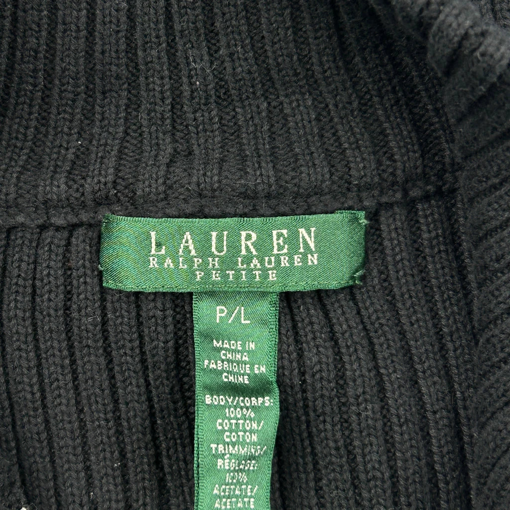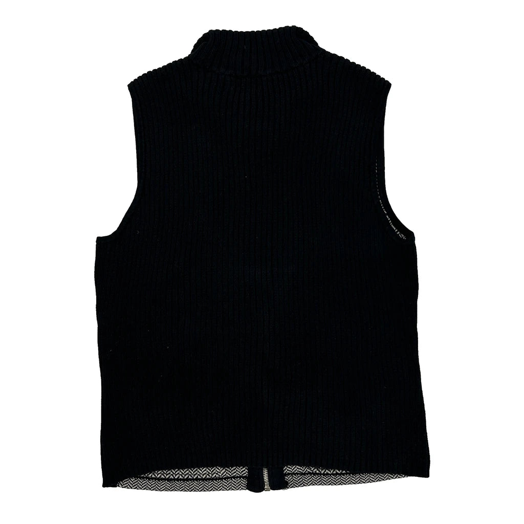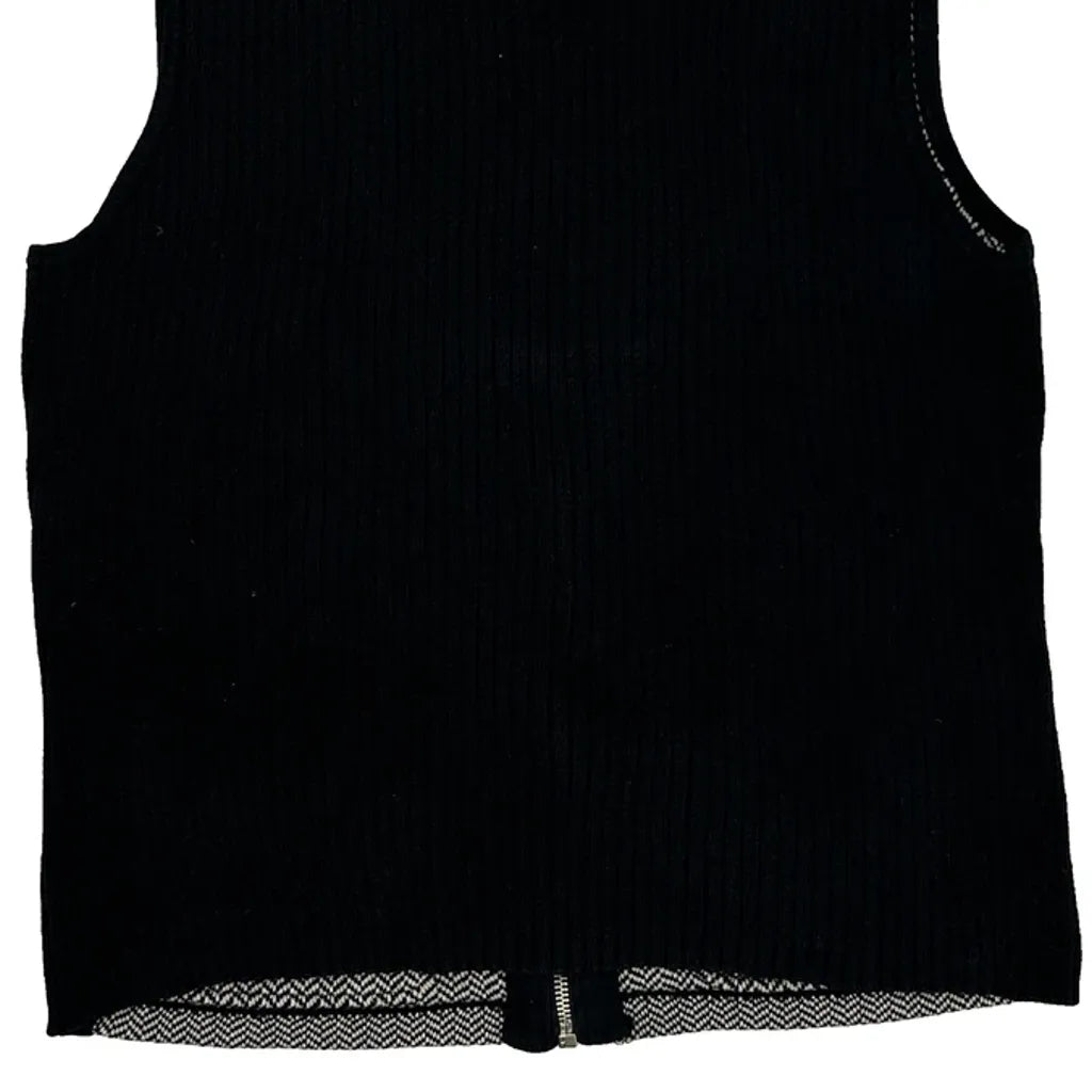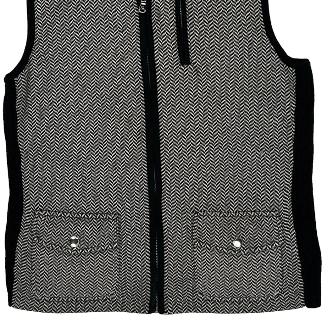 Ralph Lauren Petite Herringbone Mock Neck Gilet - Large Black & White Cotton