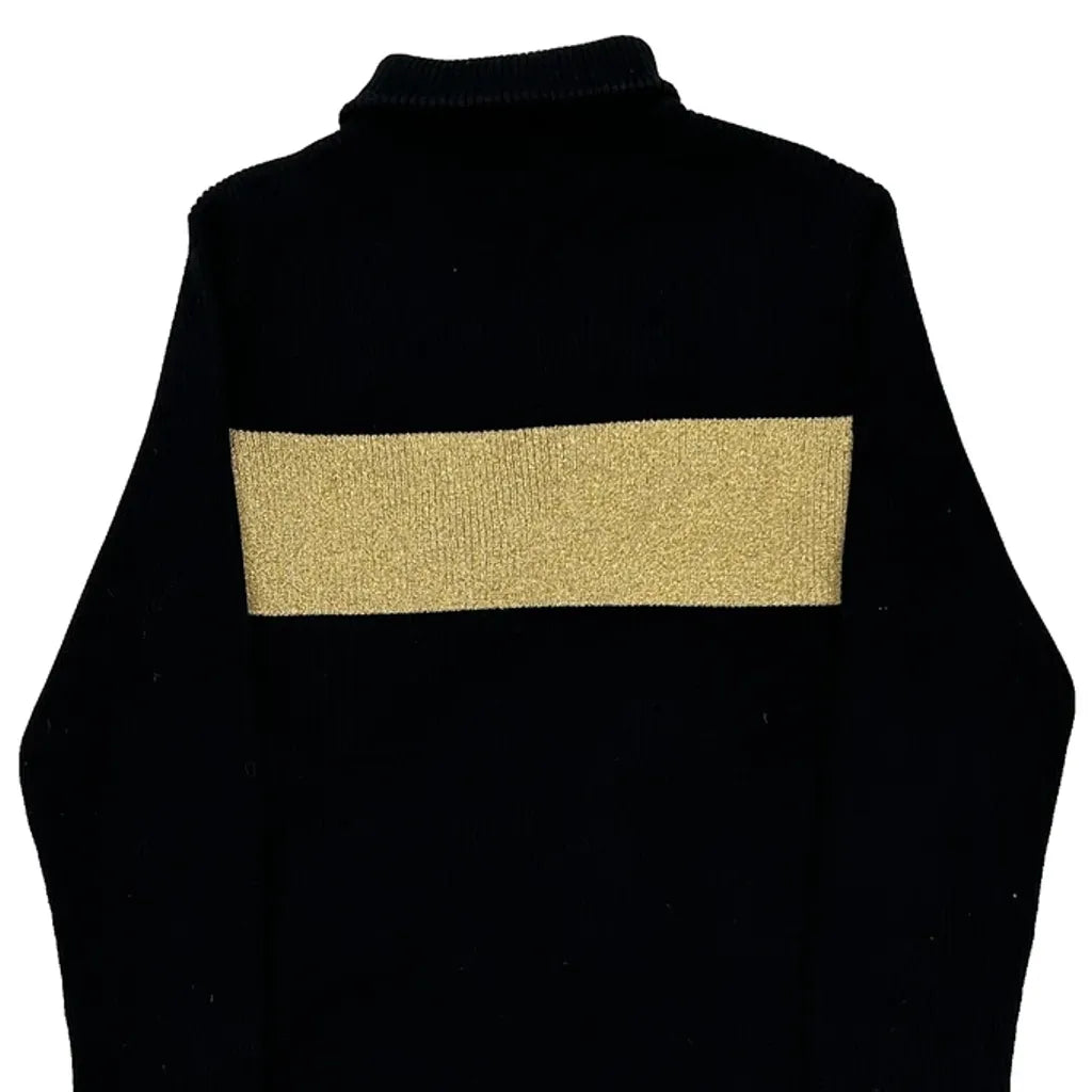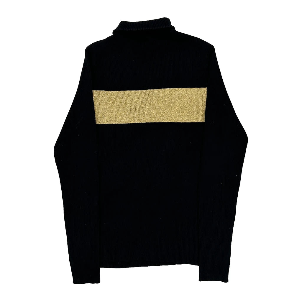 Black Top With Gold Stripe And Button Details On Shoulder