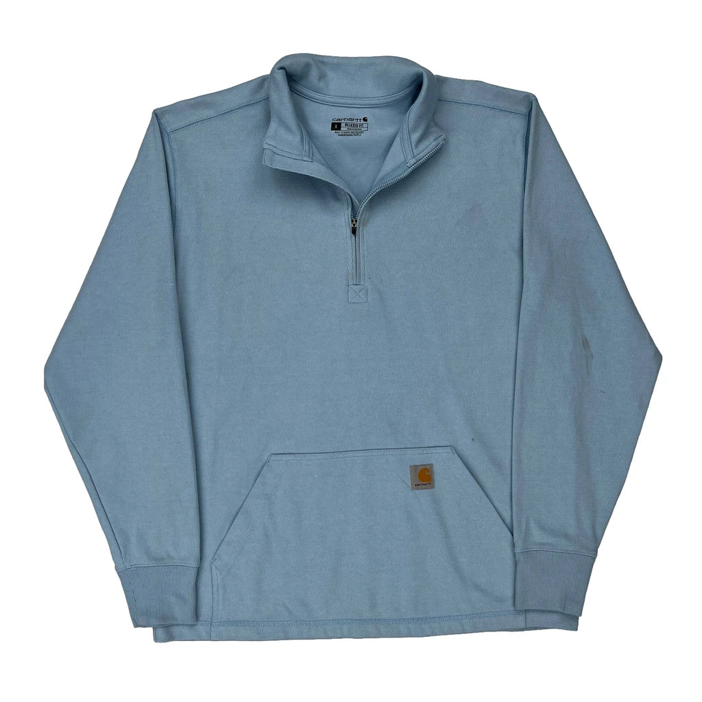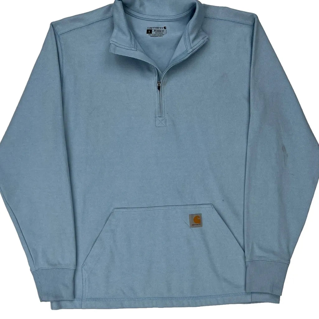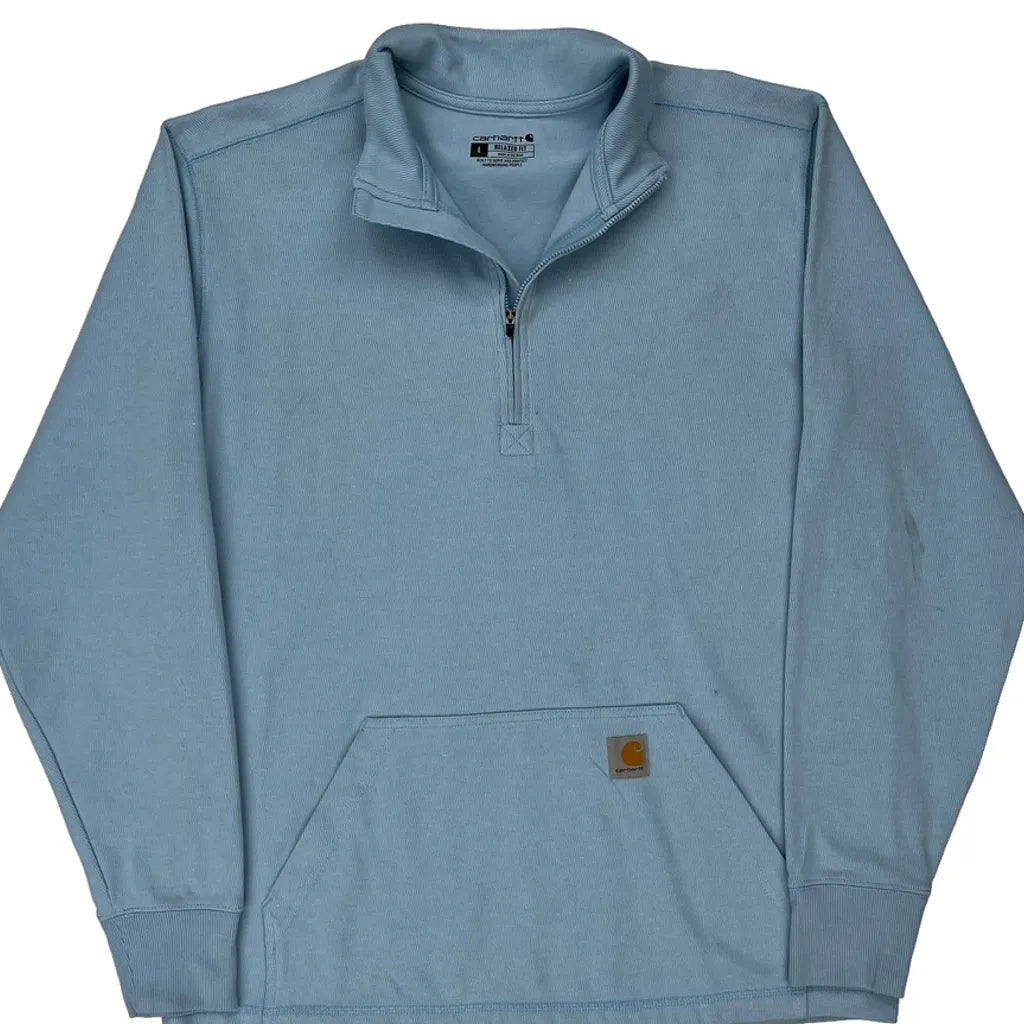 Relaxed Fit Carhartt 1/4 Zip - Large Blue Cotton Blend