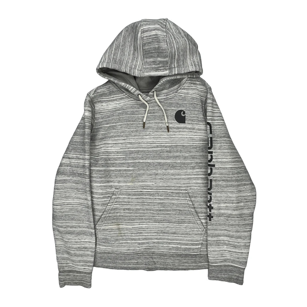 Relaxed Fit Carhartt Striped Hoodie - XL Grey Cotton Blend
