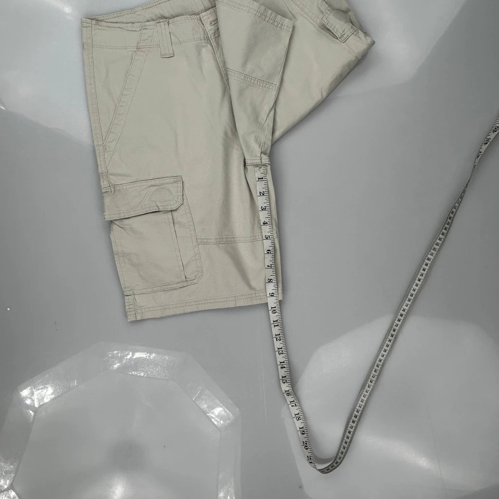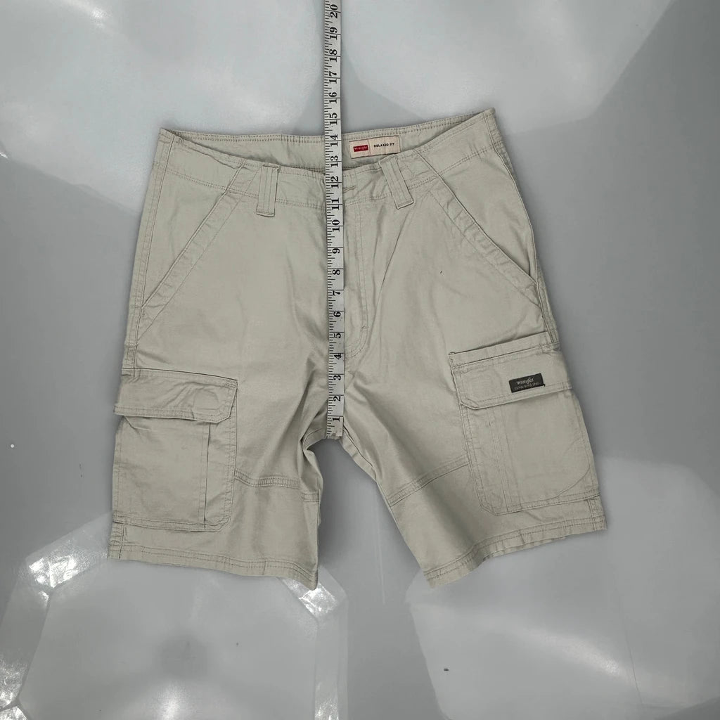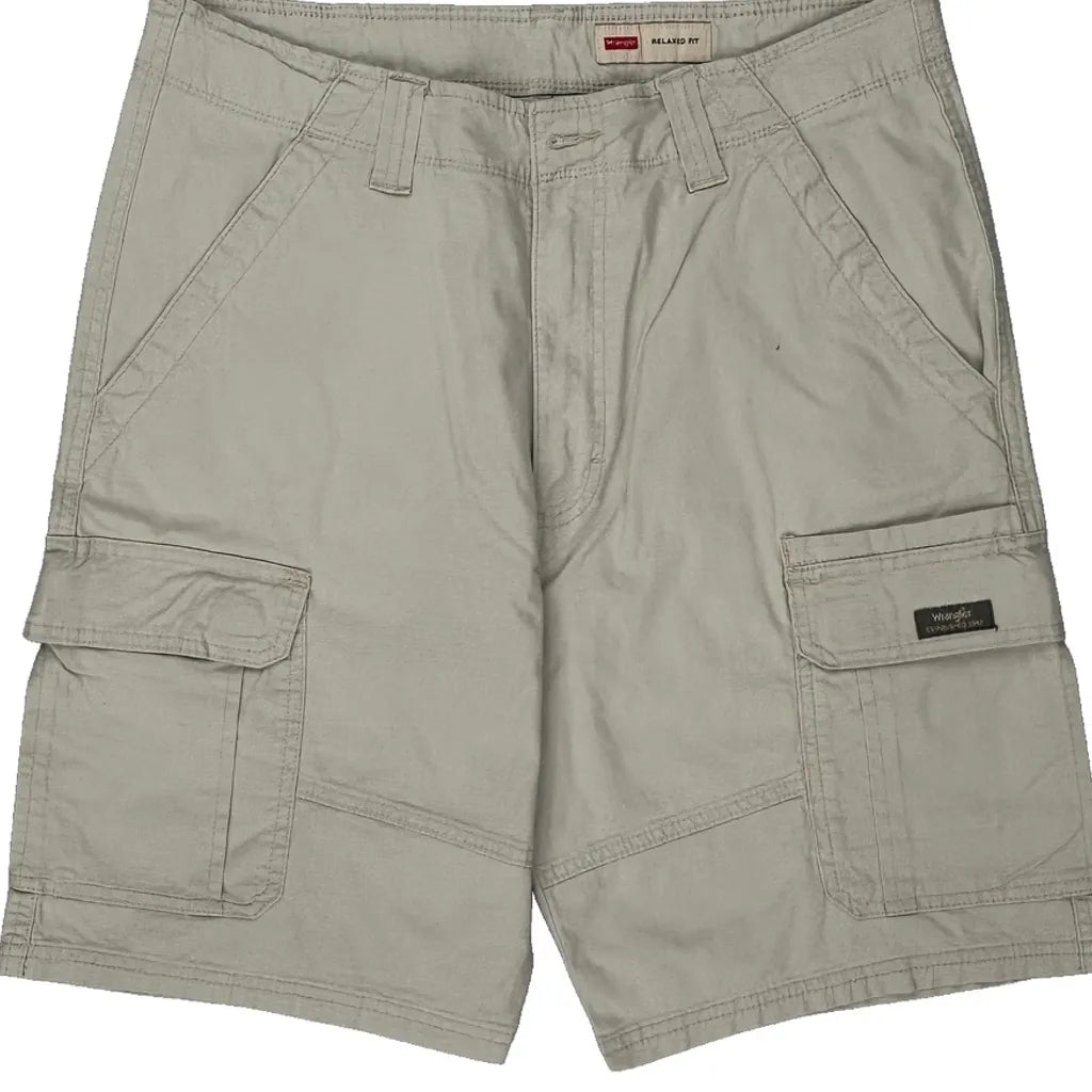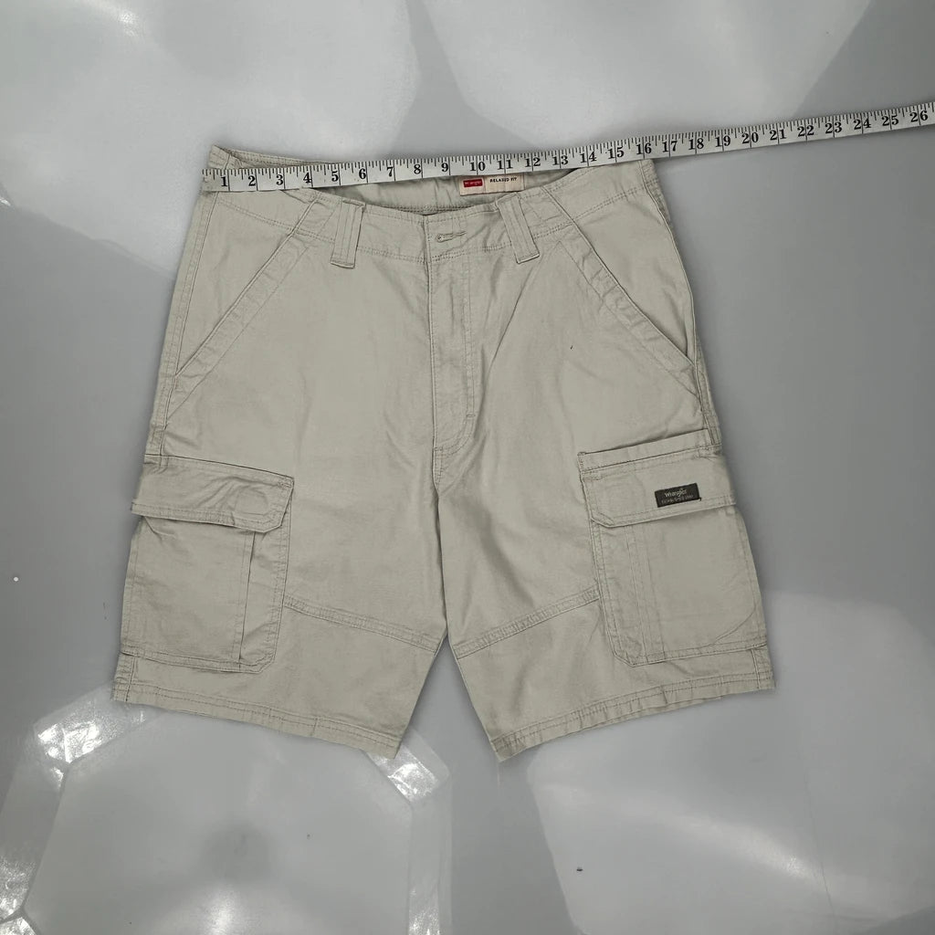 Relaxed Fit Wrangler Cargo Shorts - 32W 10L Beige Cotton