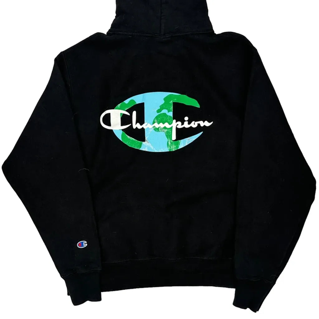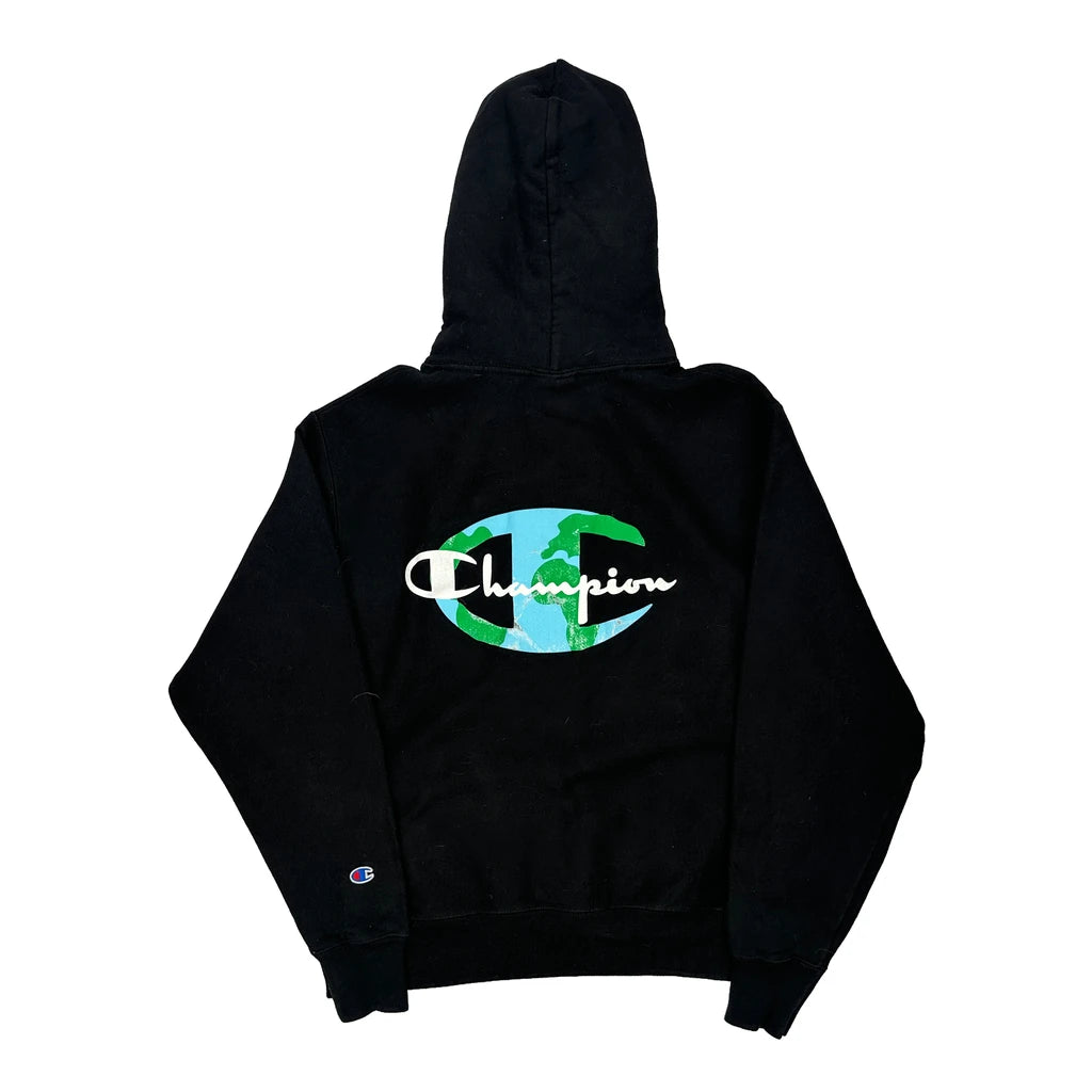 Reverse Weave Champion Graphic Hoodie - Medium Black Cotton