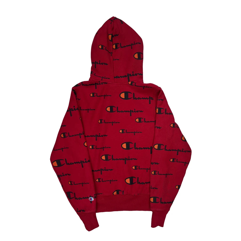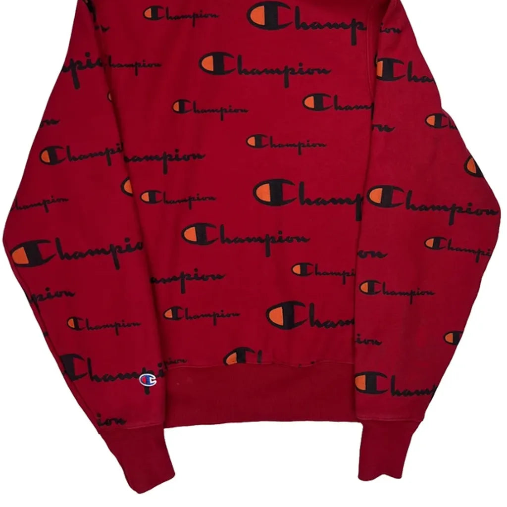 Reverse Weave Champion Spellout Hoodie - Small Red Cotton