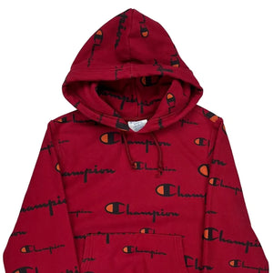 Red Hoodie With Champion Spellout Logo Pattern
