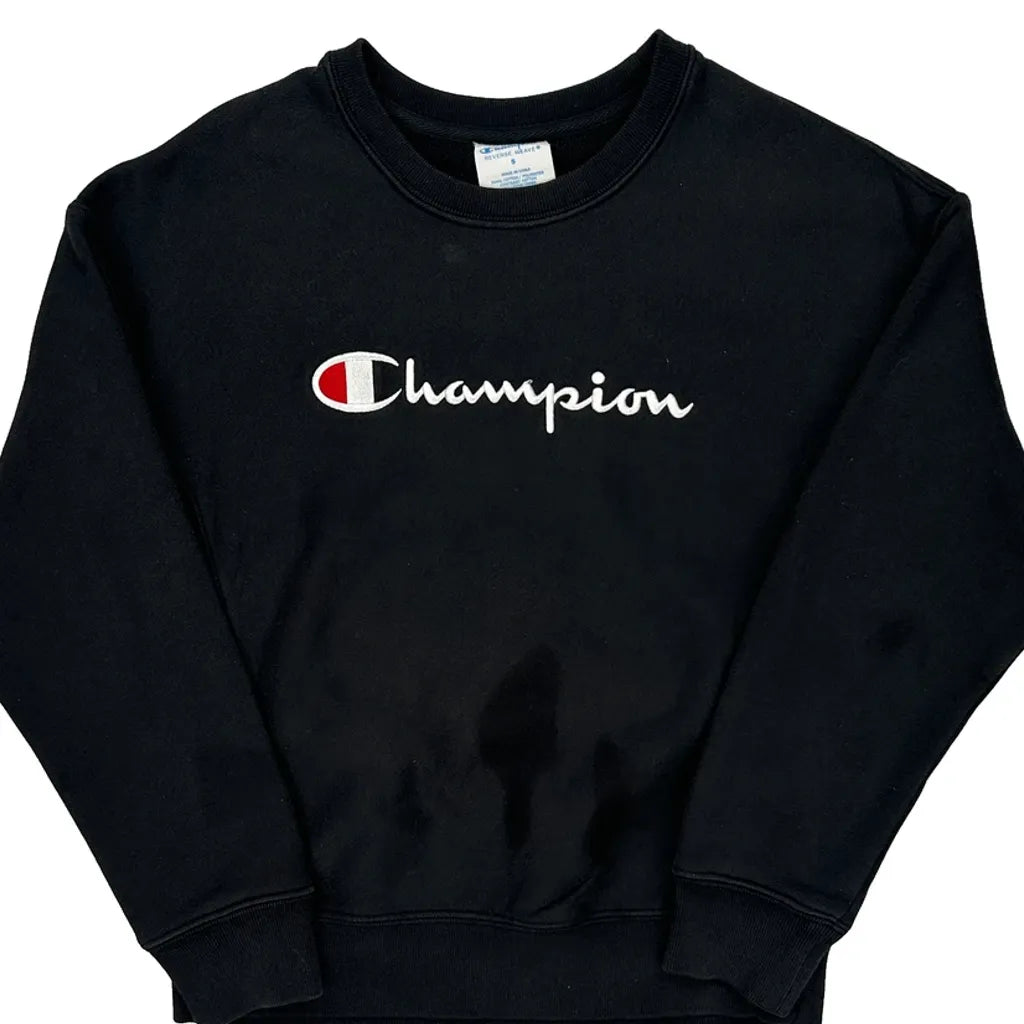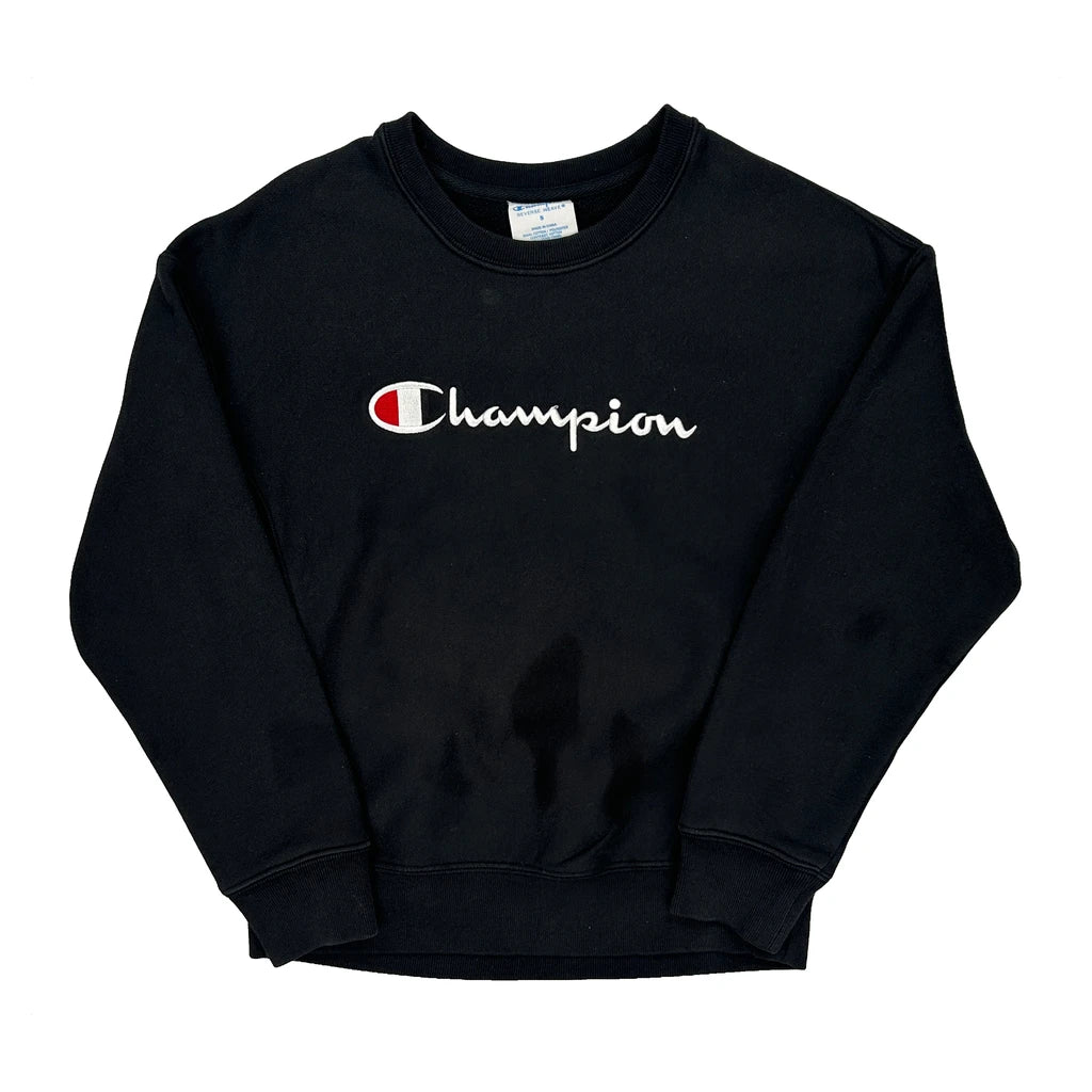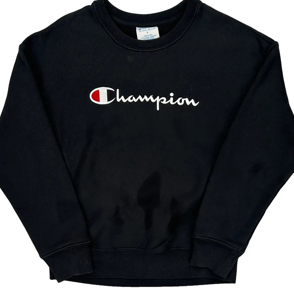 Reverse Weave Champion Spellout Sweatshirt - Small Black Cotton Blend