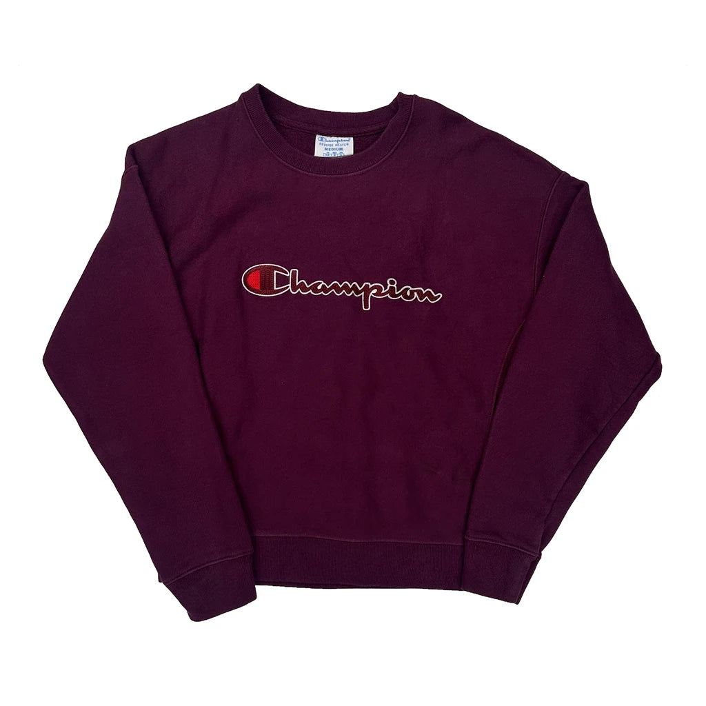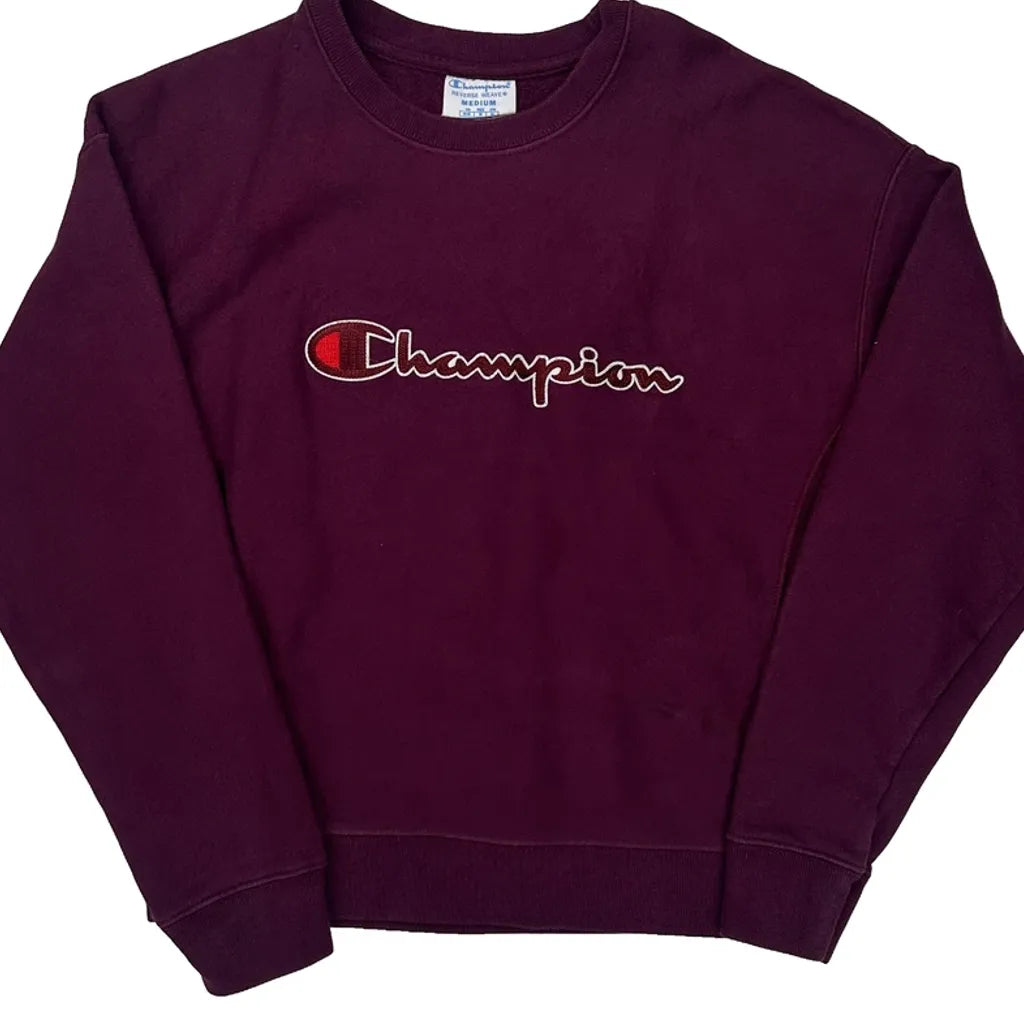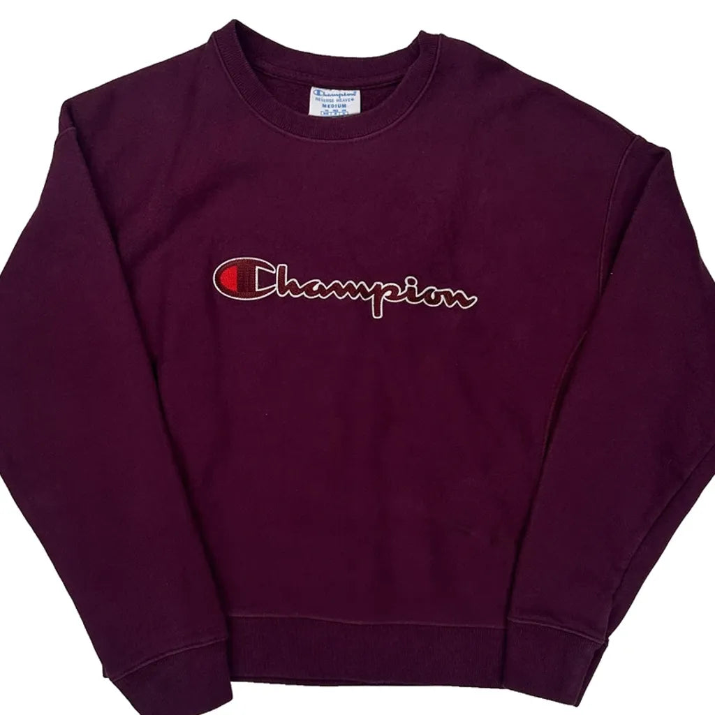 Reverse Weave Champion Spellout Sweatshirt - Medium Burgundy Cotton