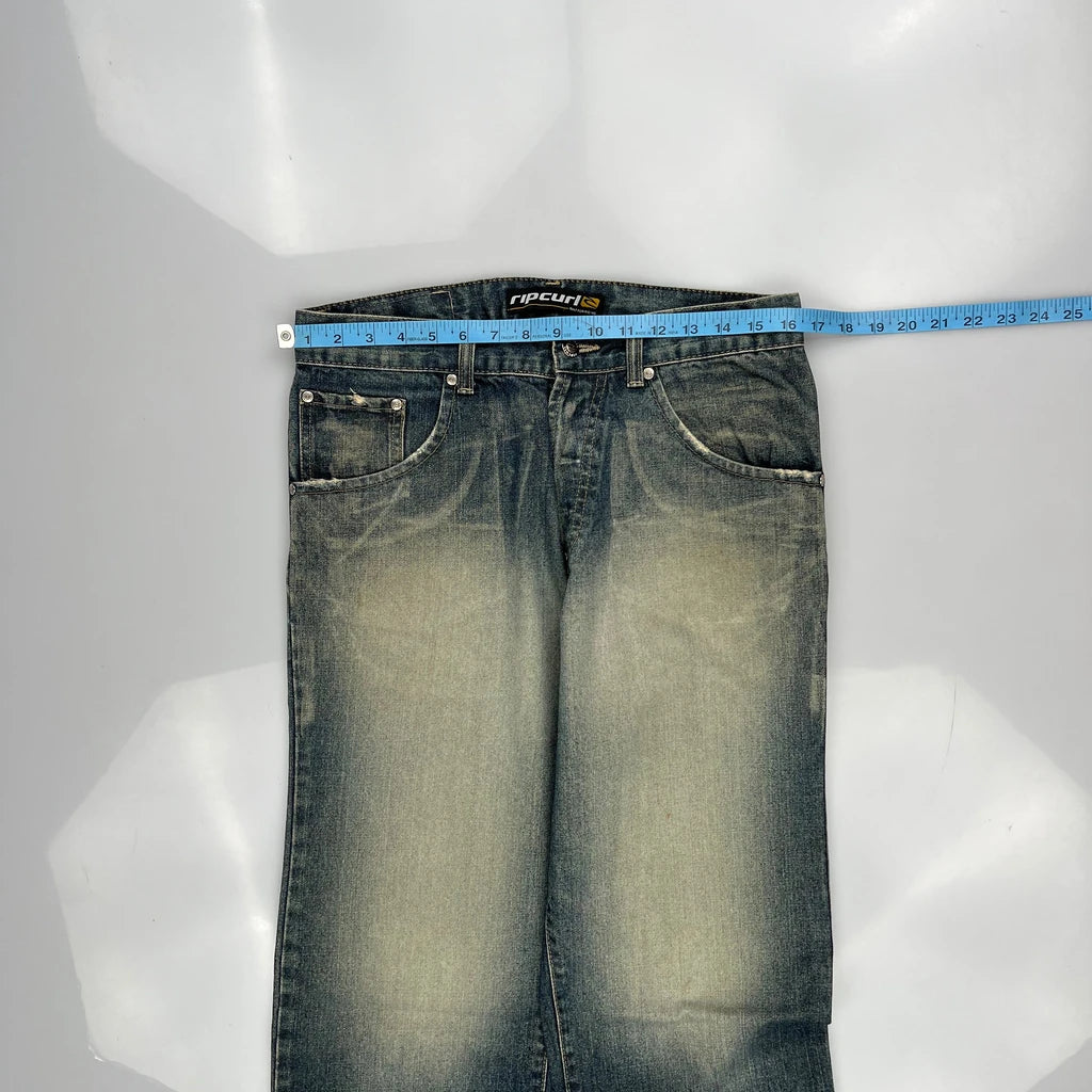 Rip Curl Wide Leg Jeans - 33W 32L Stone Wash Cotton