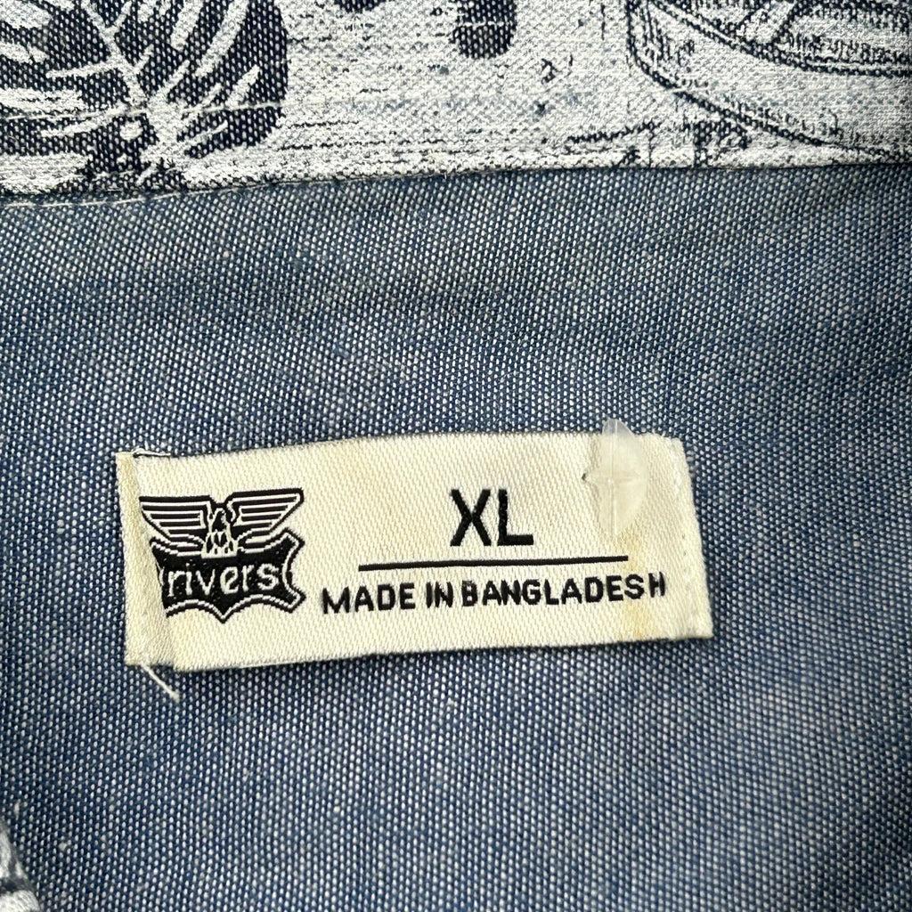 Rivers Graphic Hawaiian Shirt - XL Black & White Cotton
