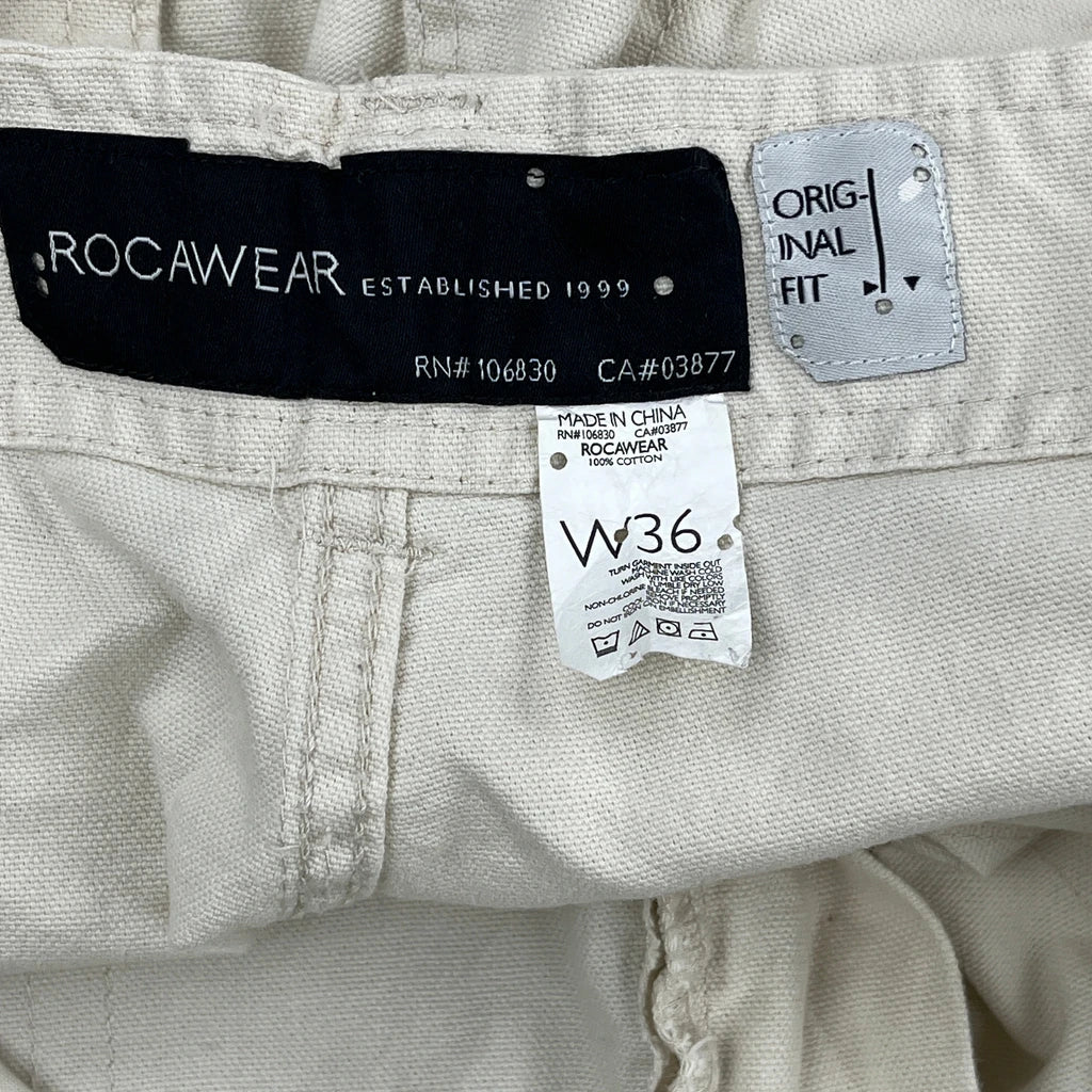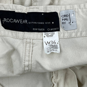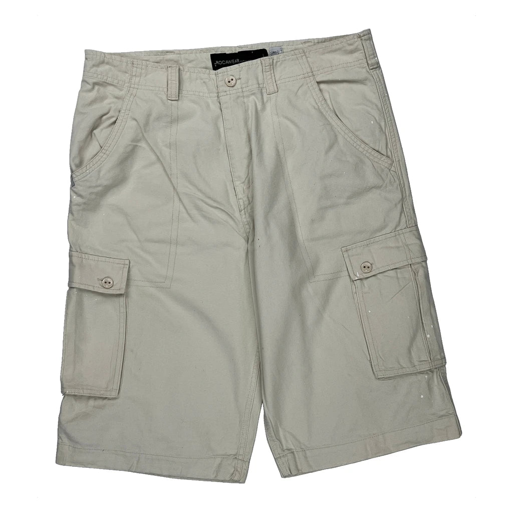 Rocawear Hip Hop Cargo Shorts - 36W 12L Beige Cotton