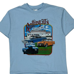 Rolling 50'S Classics, Inc. Hanes Single Stitch T-Shirt - Large Blue Cotton Blend