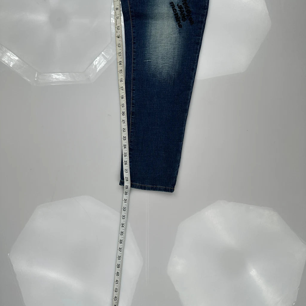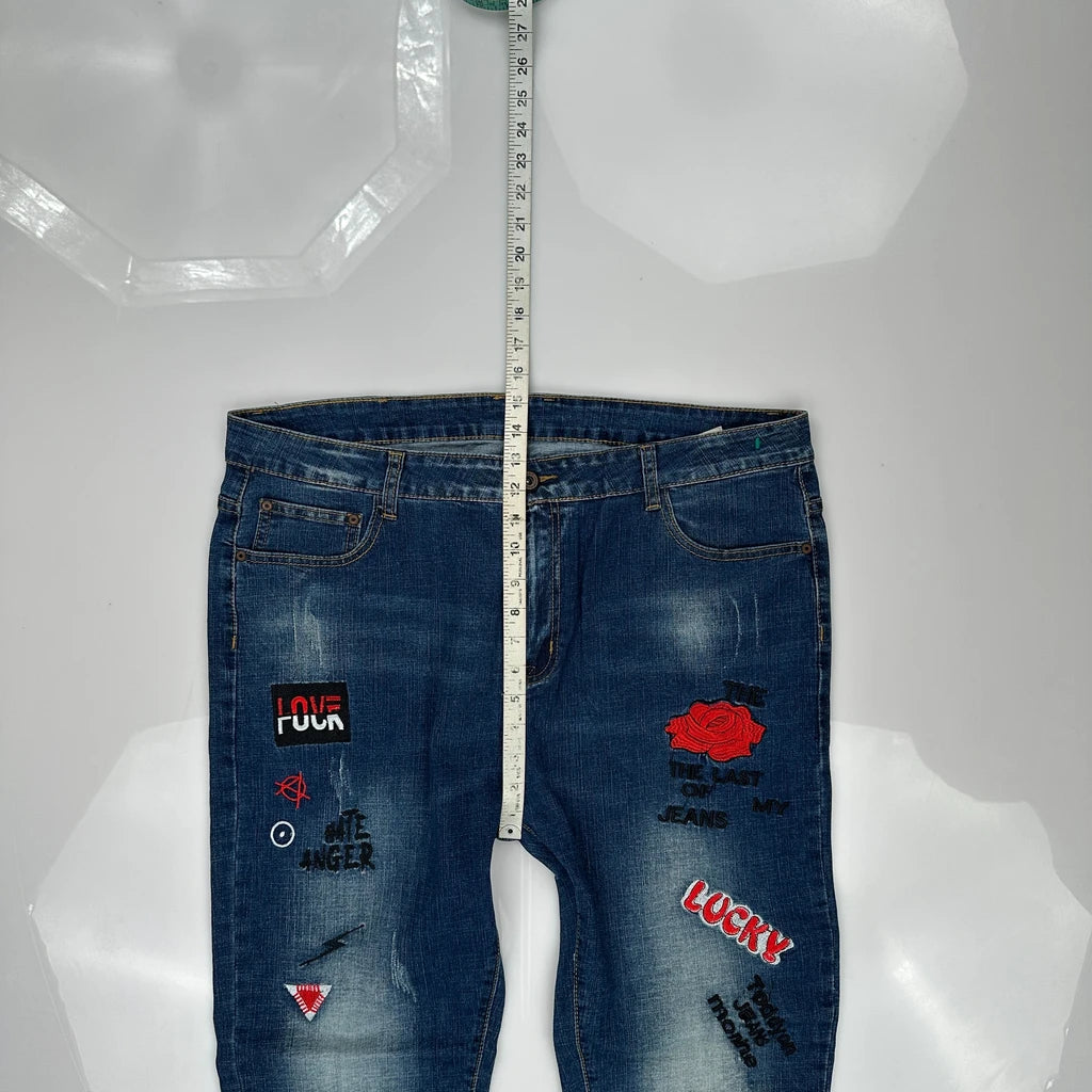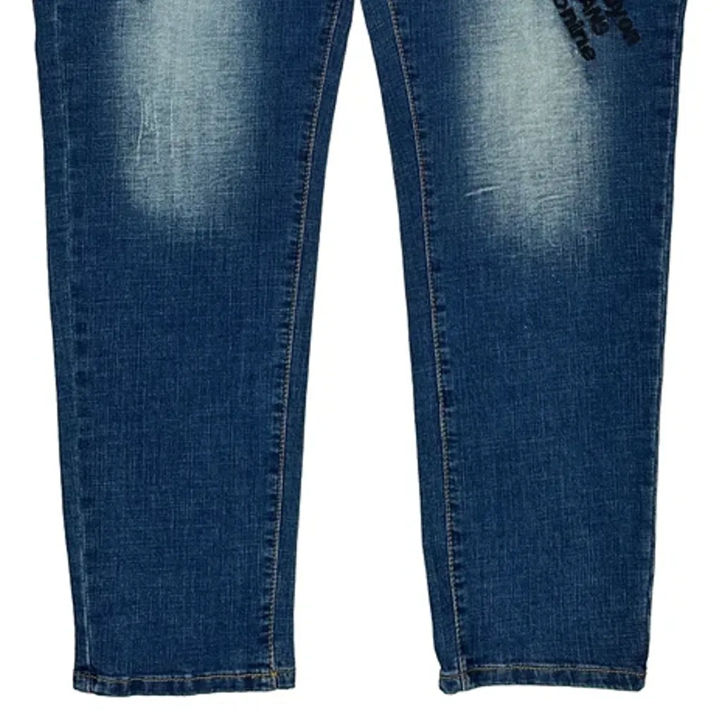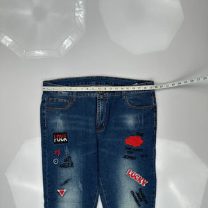 Rose & Words Graphic Jeans - 39W 28L Blue Denim