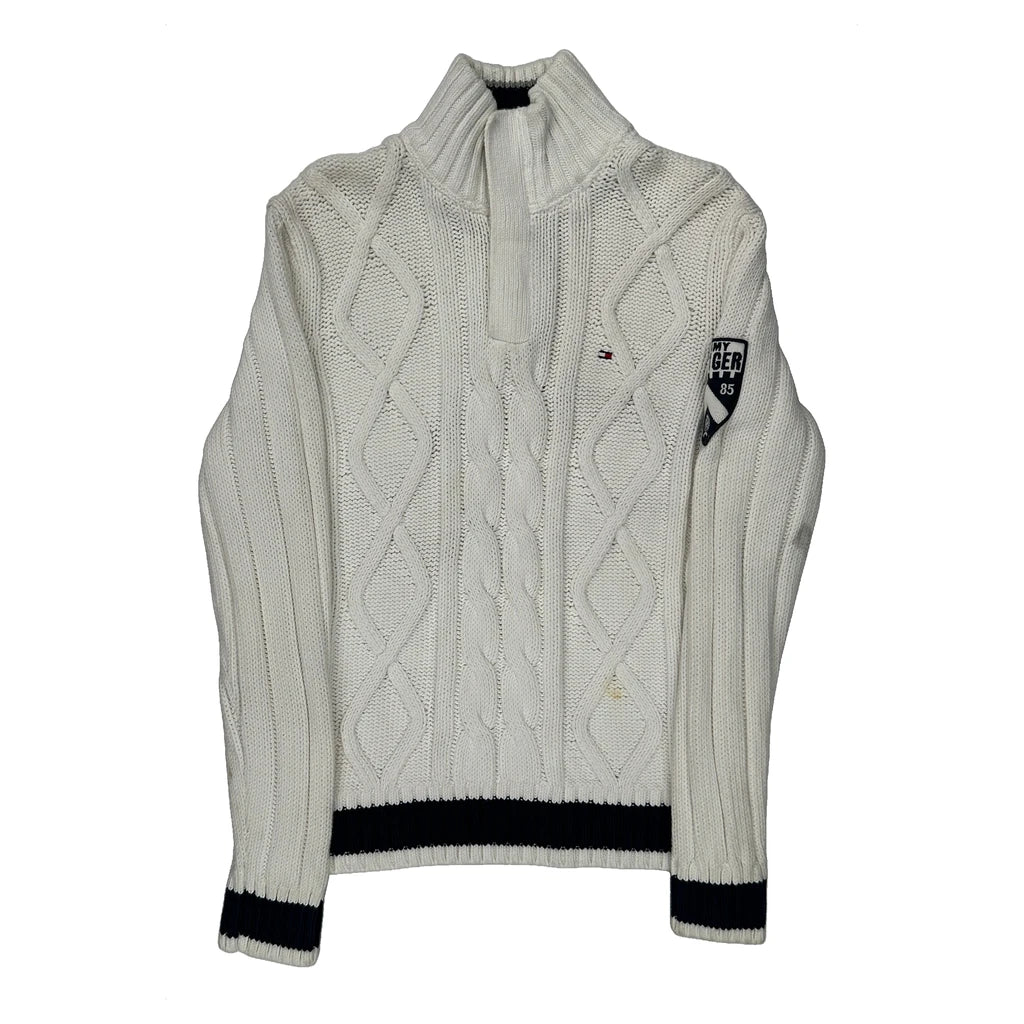 Shield Patch On Sleeve Tommy Hilfiger 1/4 Zip - Medium White Cotton