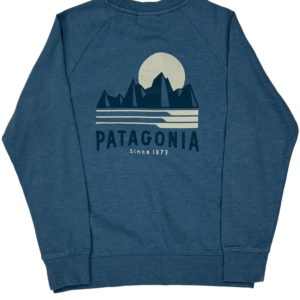 Age 10 Since 1973 Patagonia Graphic Sweatshirt - Large Blue Cotton
