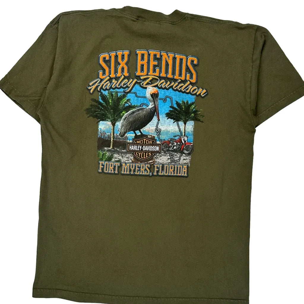 Six Bends Fort Myers, Florida Harley Davidson Graphic T-Shirt - Large Green Cotton