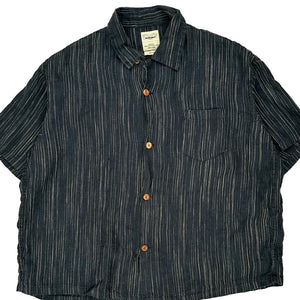 Sonofloong Striped Short Sleeve Shirt - 2XL Blue Linen