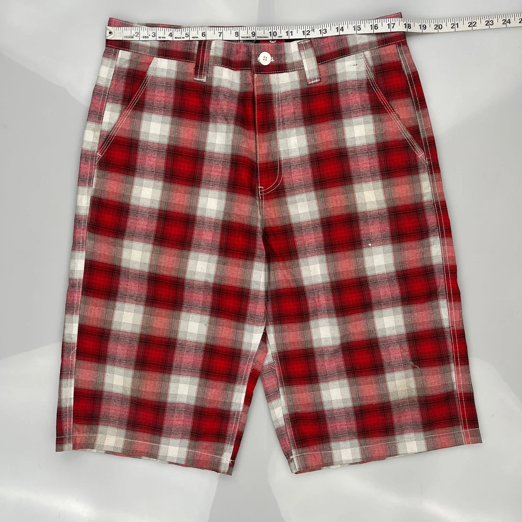 Southpole Checked Shorts - 36W 11L Red Cotton