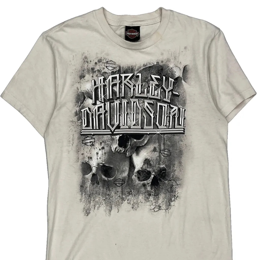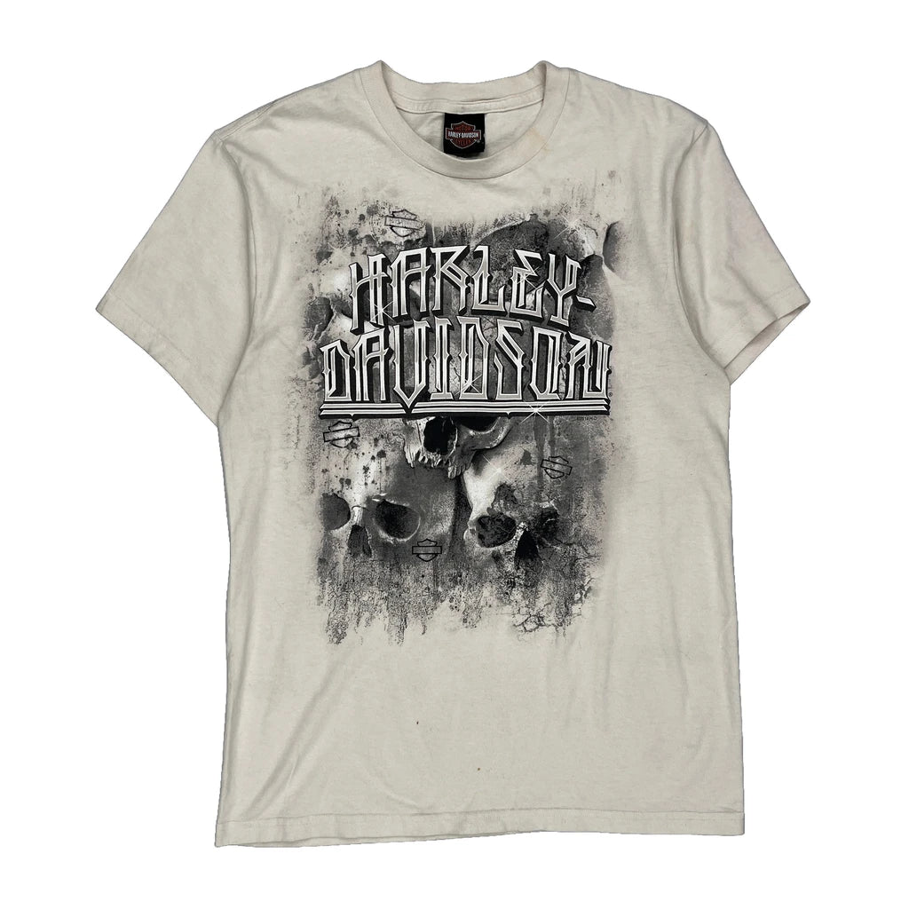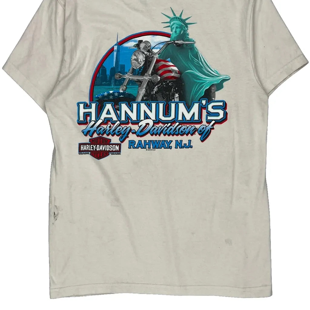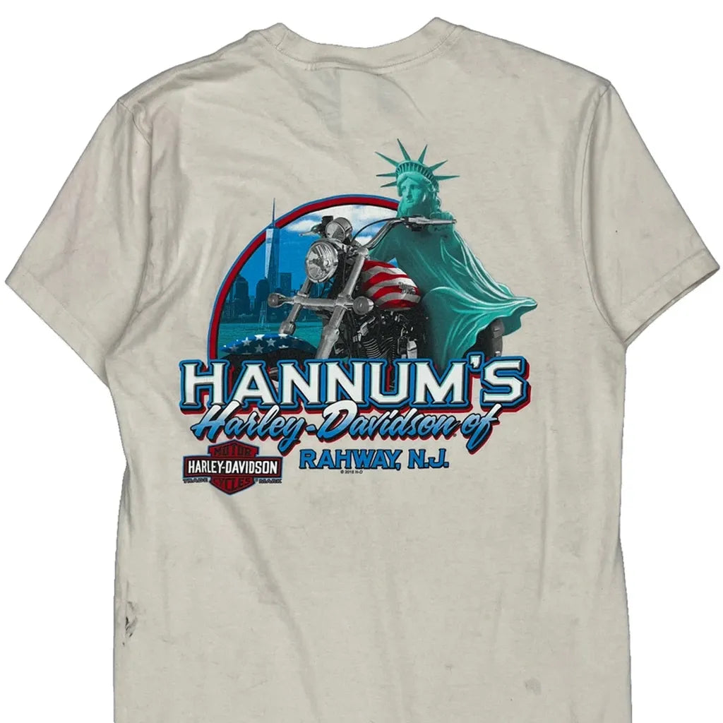 Statue Of Liberty Harley Davidson Graphic T-Shirt - Medium Cream Cotton