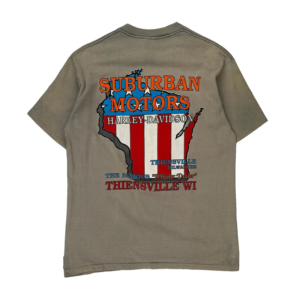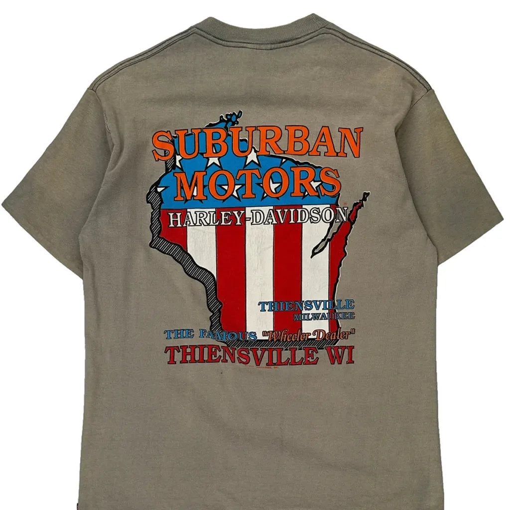 Suburban Motors Thiensville Wi Holubek Harley Davidson Graphic T-Shirt - Large Grey Cotton