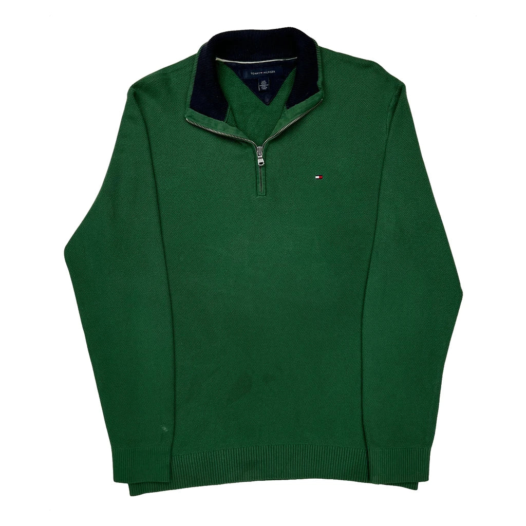 Tommy Hilfiger 1/4 Zip - Large Green Cotton