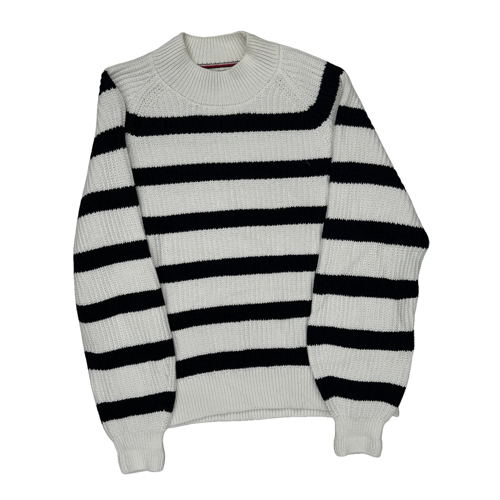 Tommy Hilfiger Striped Jumper - Large Black & White Cotton