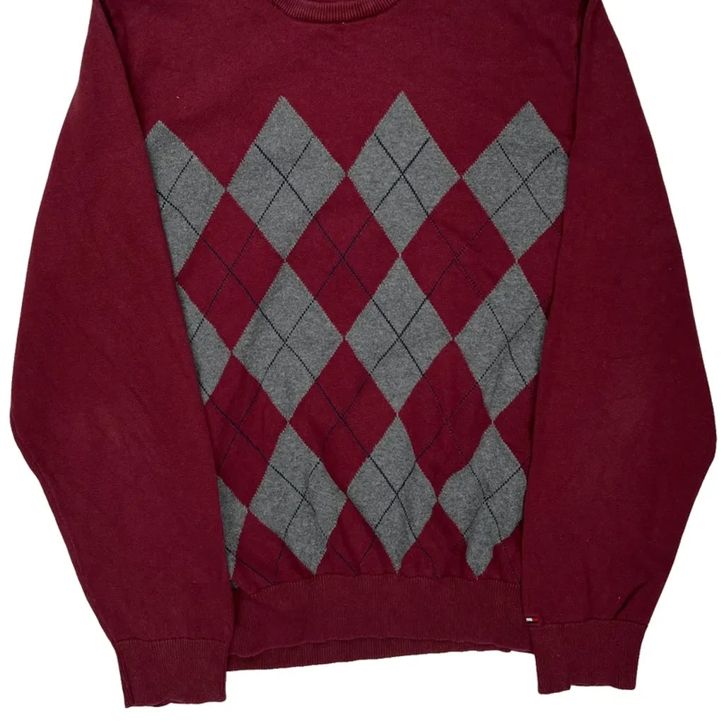 Tommy Hilfiger Argyle Jumper - 2XL Burgundy Cotton