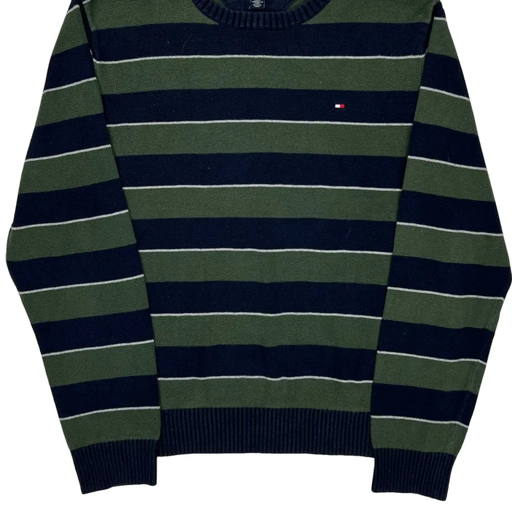 Tommy Hilfiger Striped Jumper - Small Green Cotton