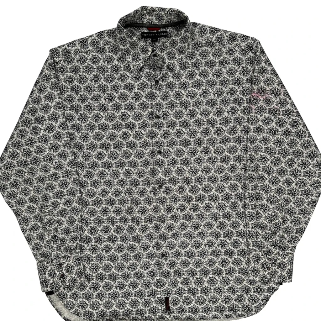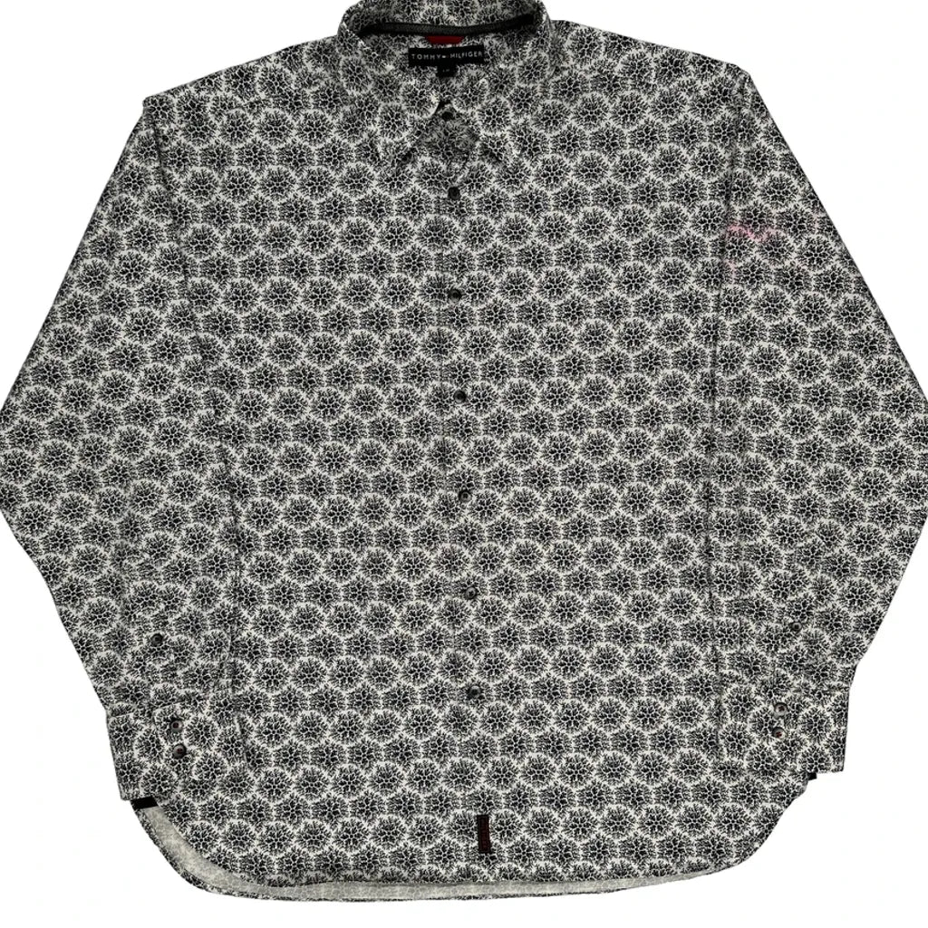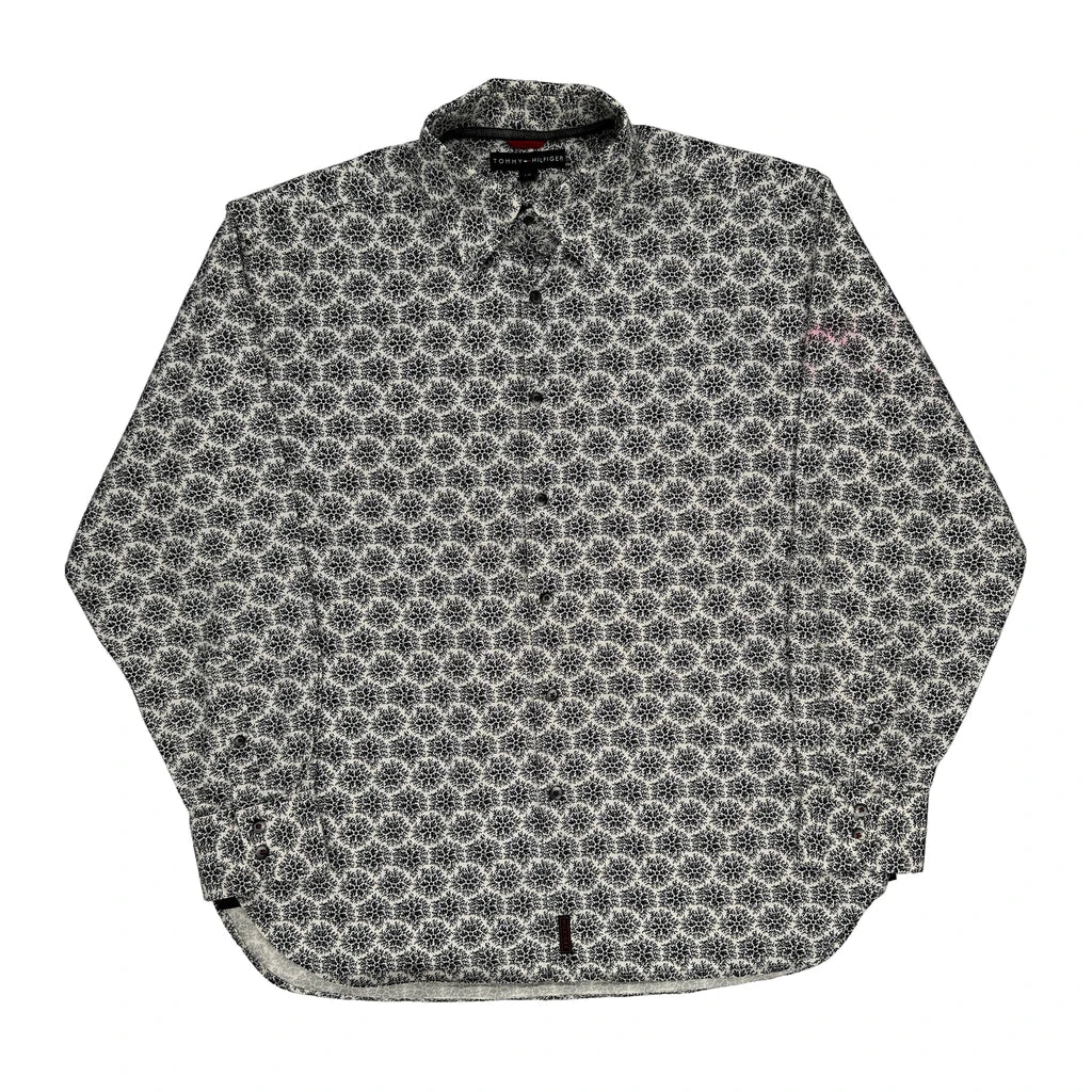 Tommy Hilfiger Christmas Patterned Shirt - Large Black & White Cotton