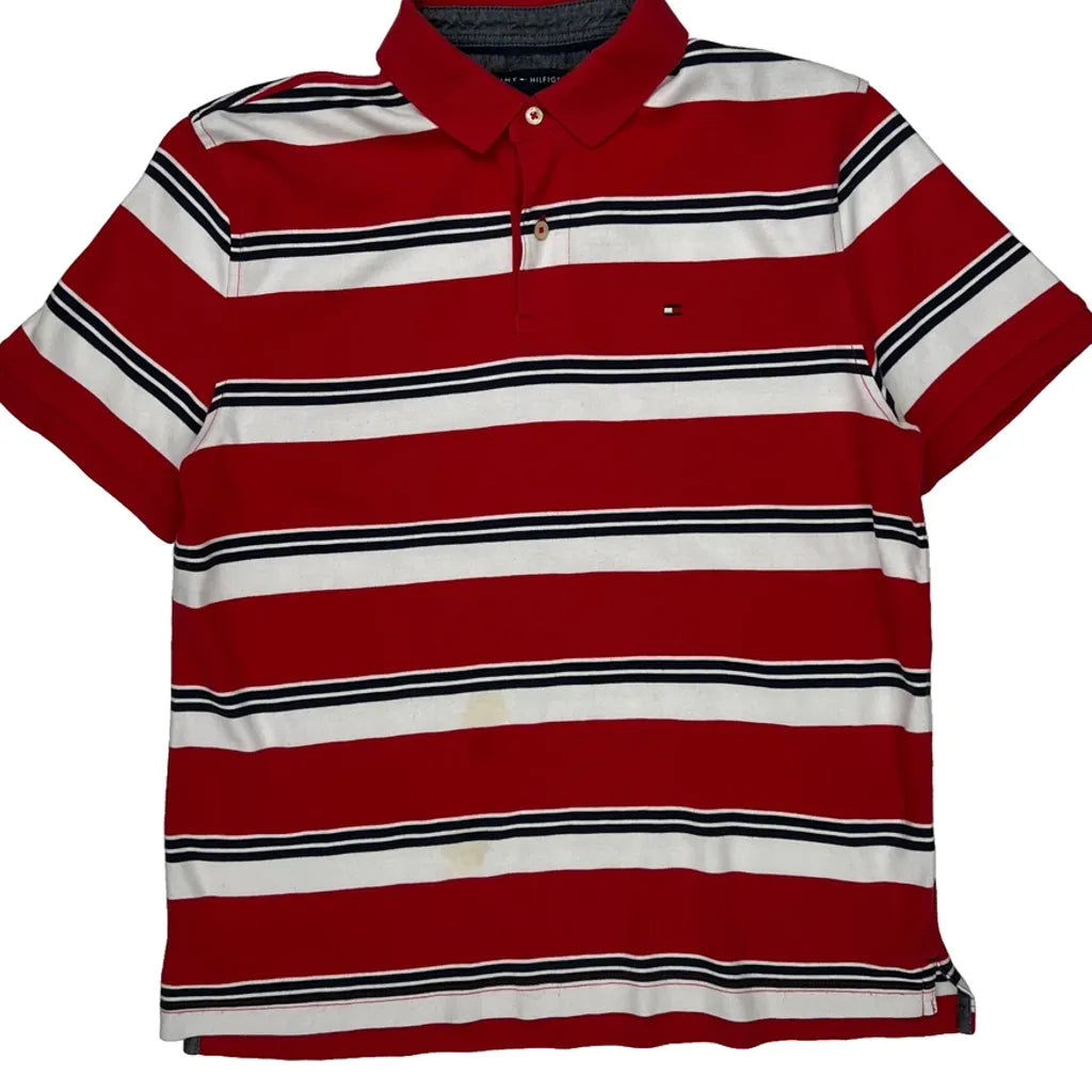 Tommy Hilfiger Striped Polo Shirt - Medium Black Cotton
