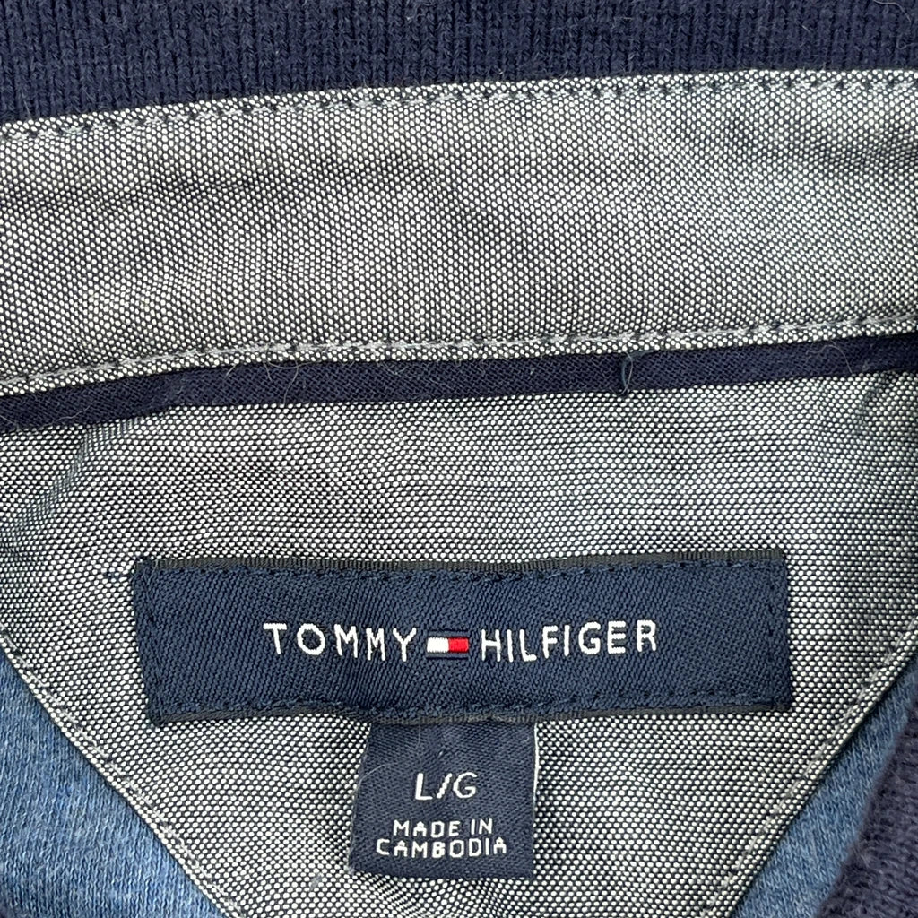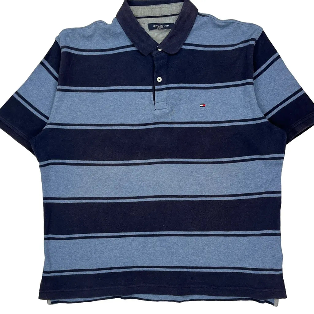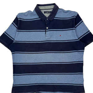 Tommy Hilfiger Striped Polo Shirt - Large Blue Cotton