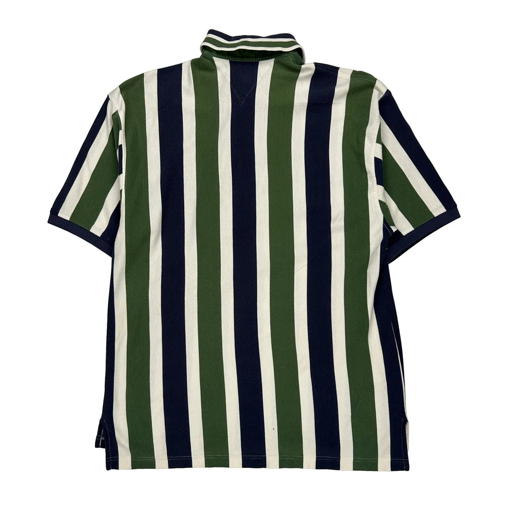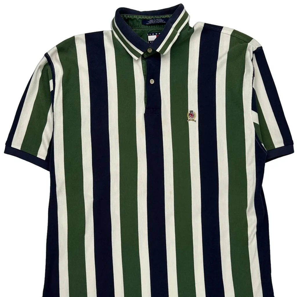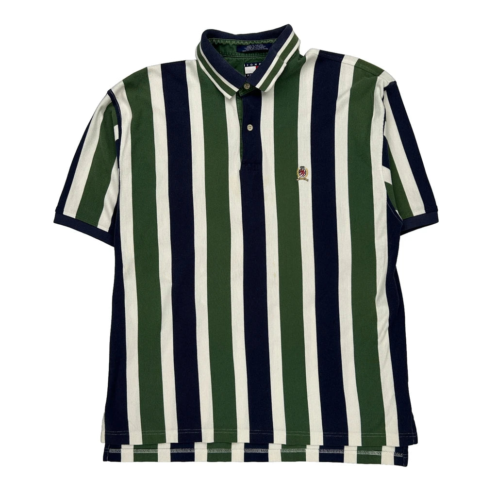 90s Tommy Hilfiger Striped Polo Shirt - Large Green Cotton