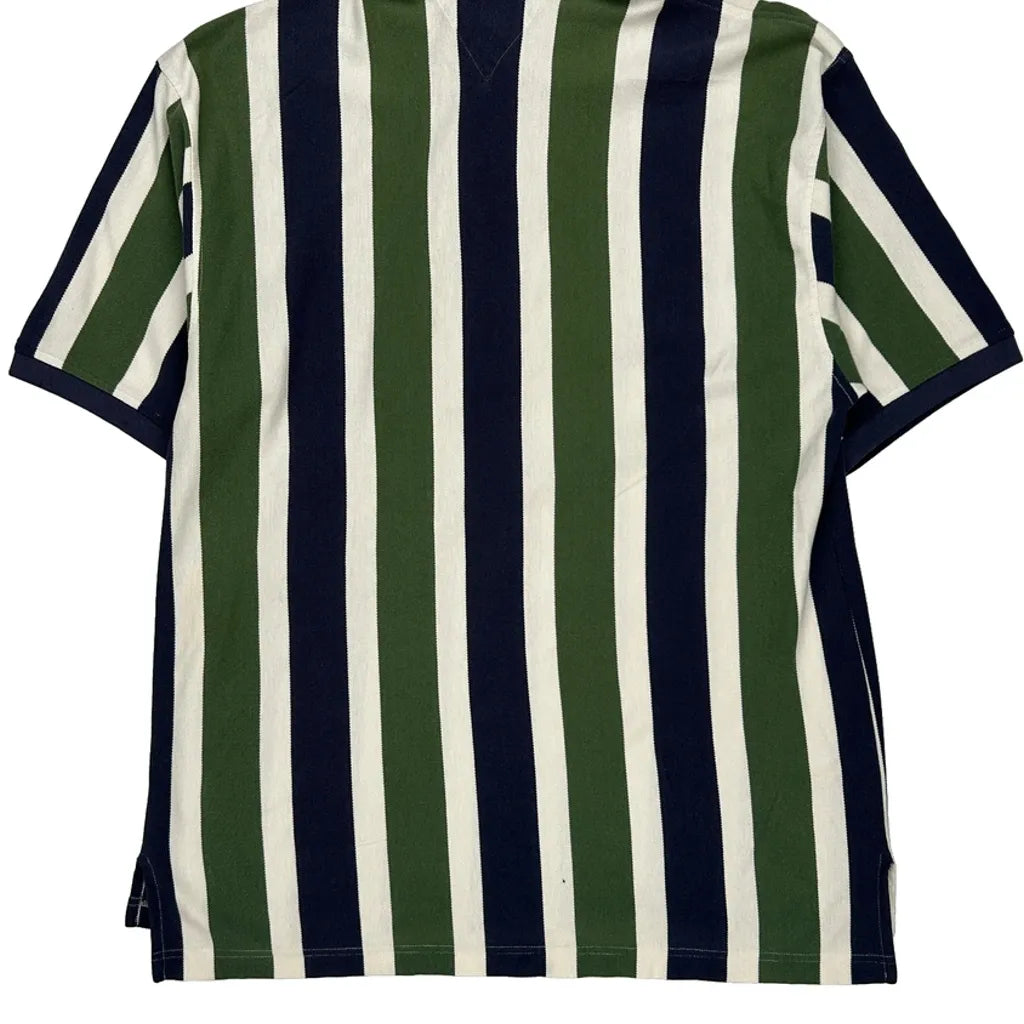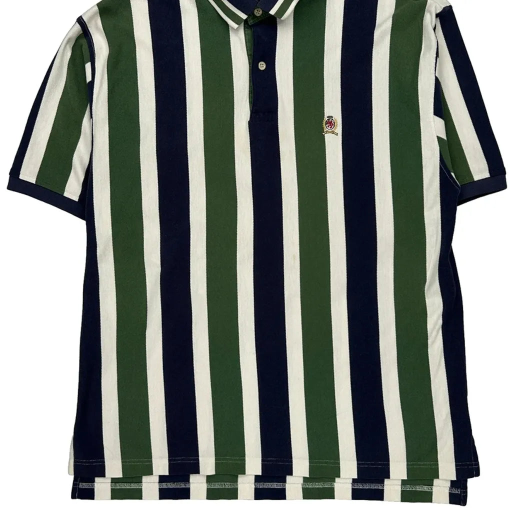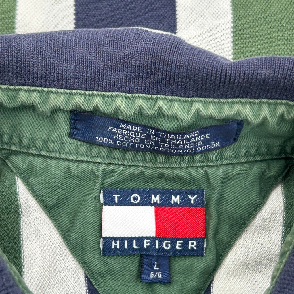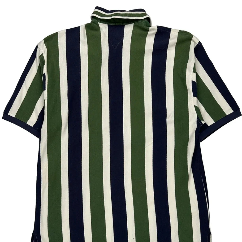 90s Tommy Hilfiger Striped Polo Shirt - Large Green Cotton