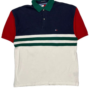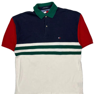 Tommy Hilfiger Striped Polo Shirt - Large Green Cotton