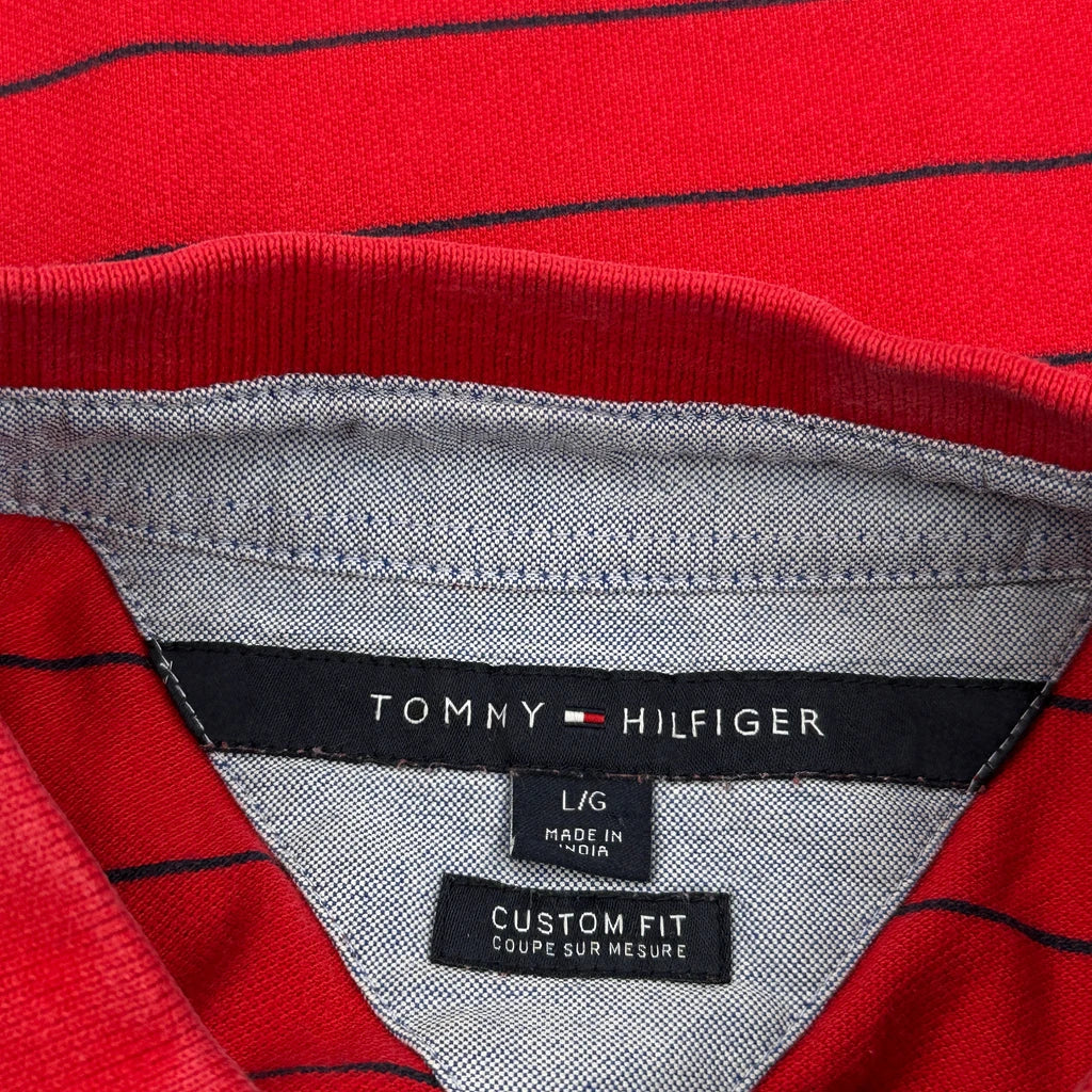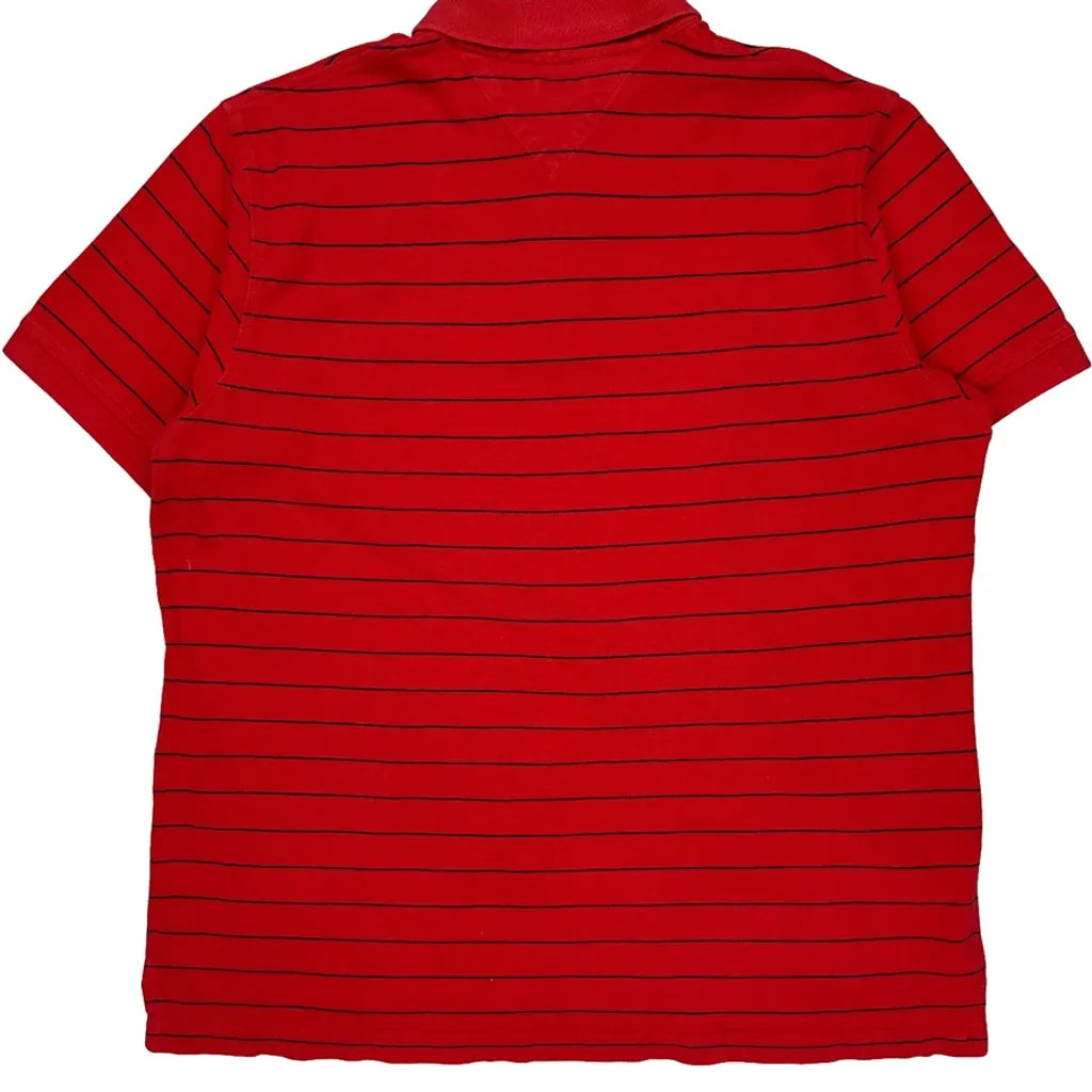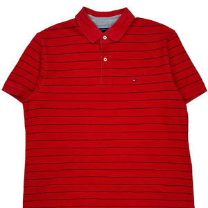 Tommy Hilfiger Striped Polo Shirt - Large Red Cotton