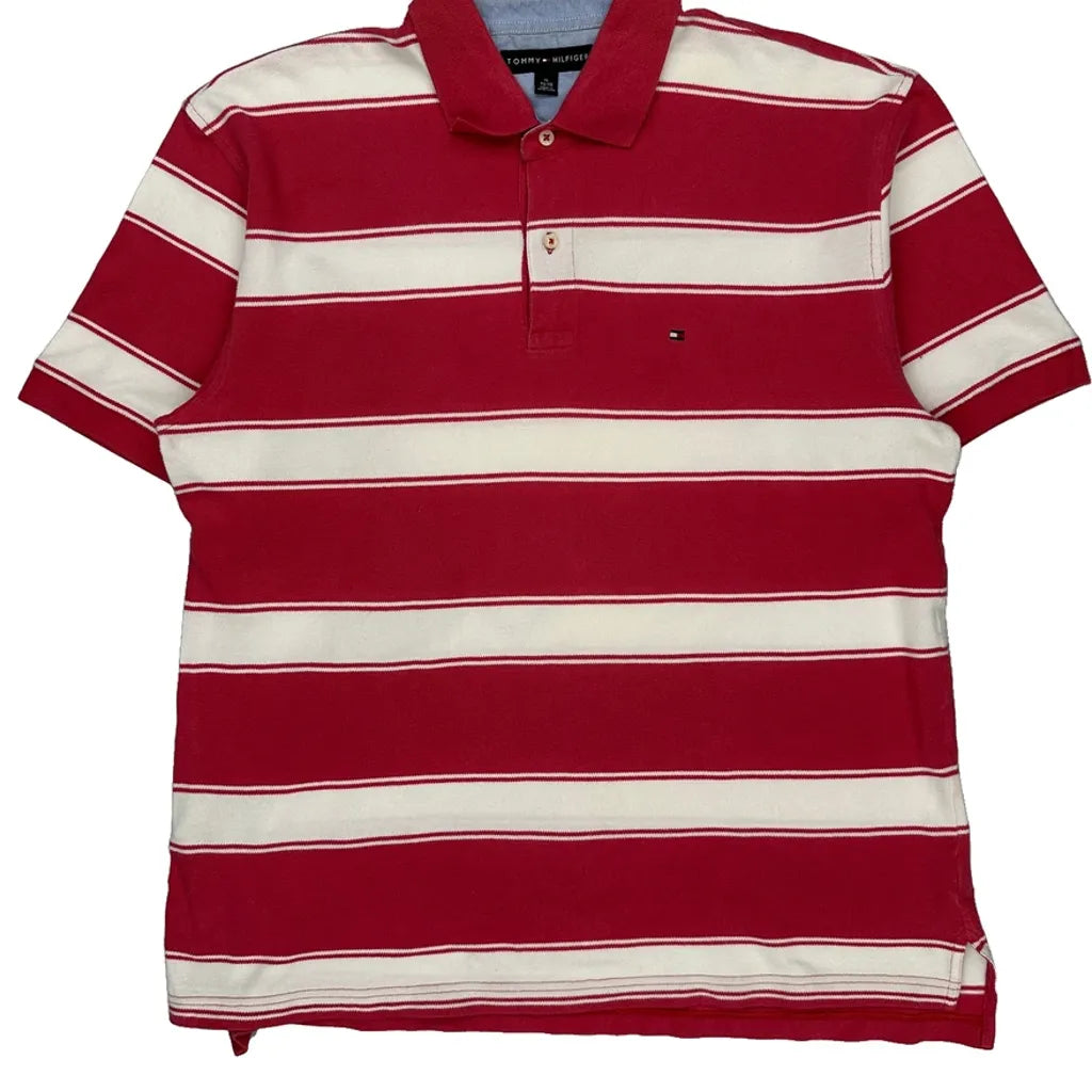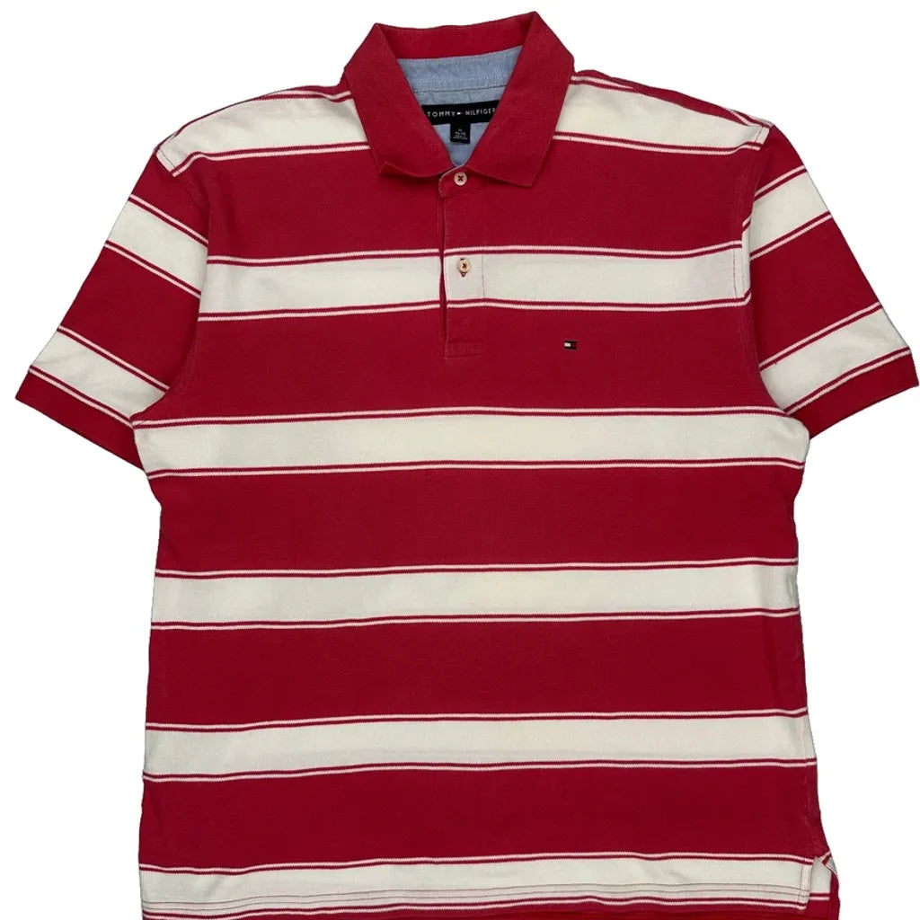 Tommy Hilfiger Striped Polo Shirt - XL Red Cotton
