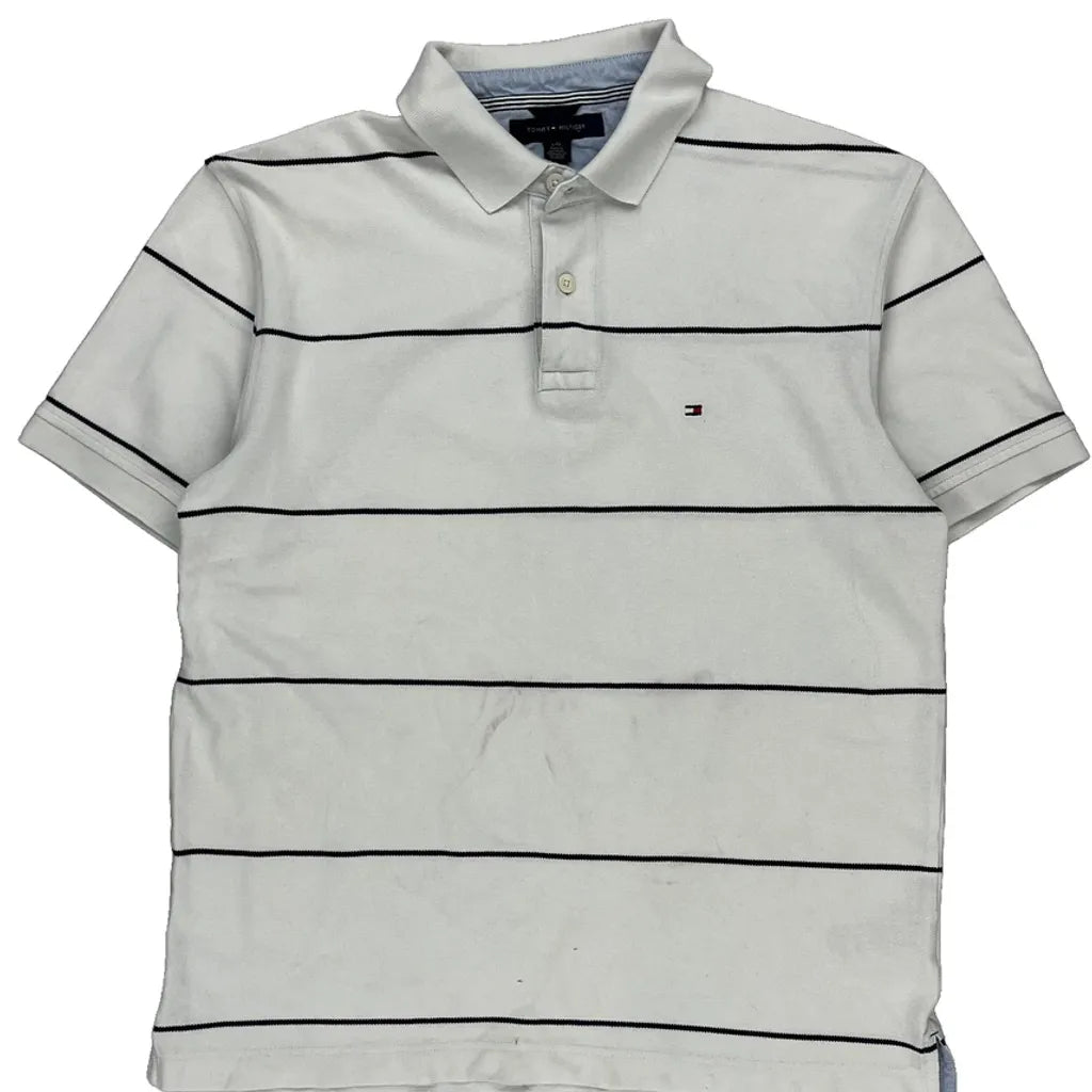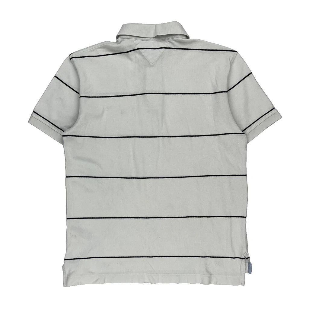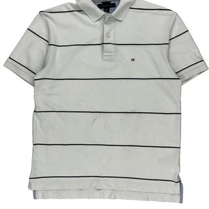 Tommy Hilfiger Striped Polo Shirt - Large White Cotton