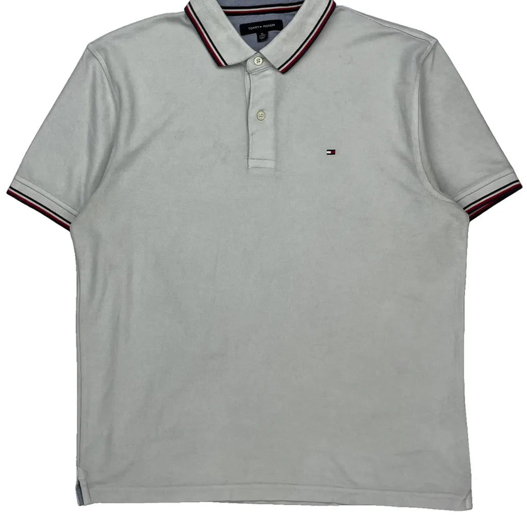 Tommy Hilfiger Striped Polo Shirt - XL White Cotton