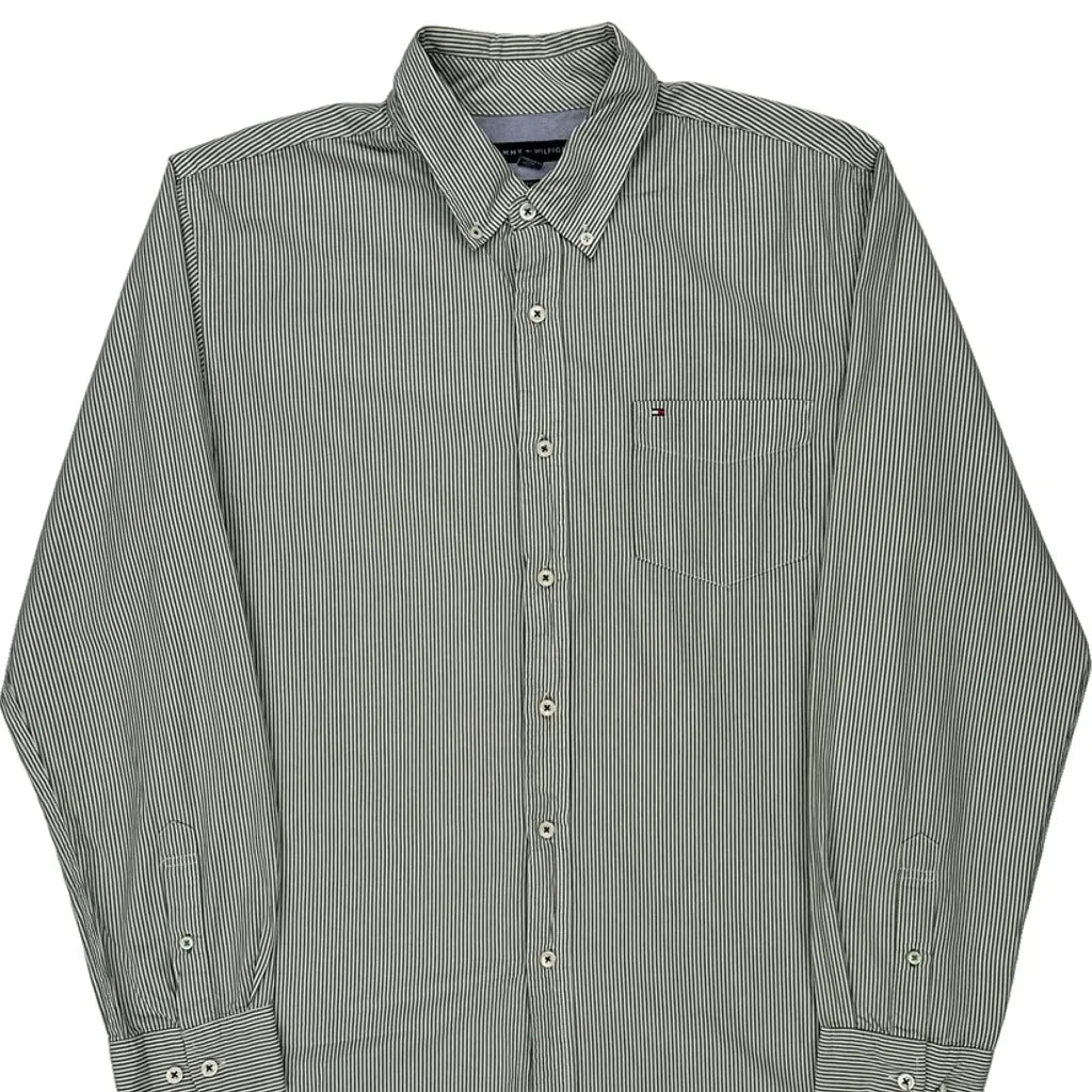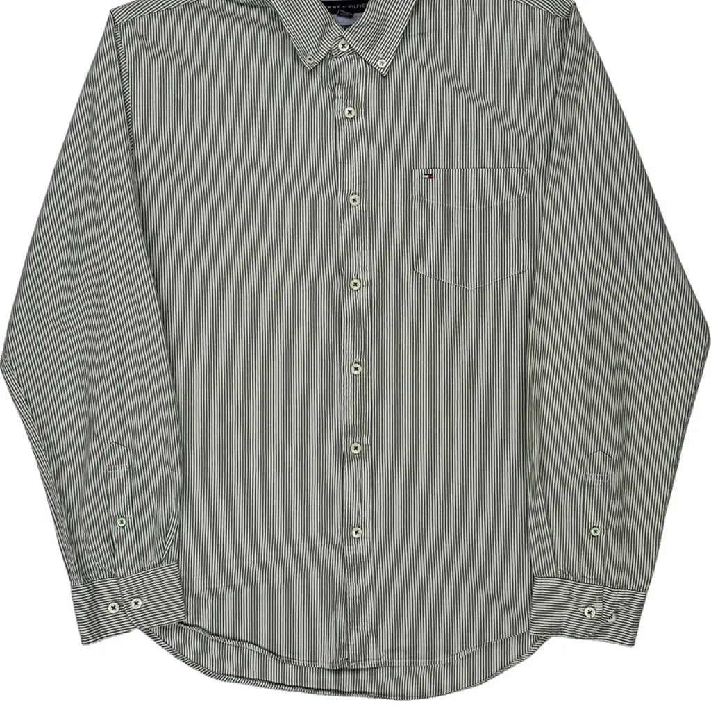 Tommy Hilfiger Striped Shirt - Large Green Cotton