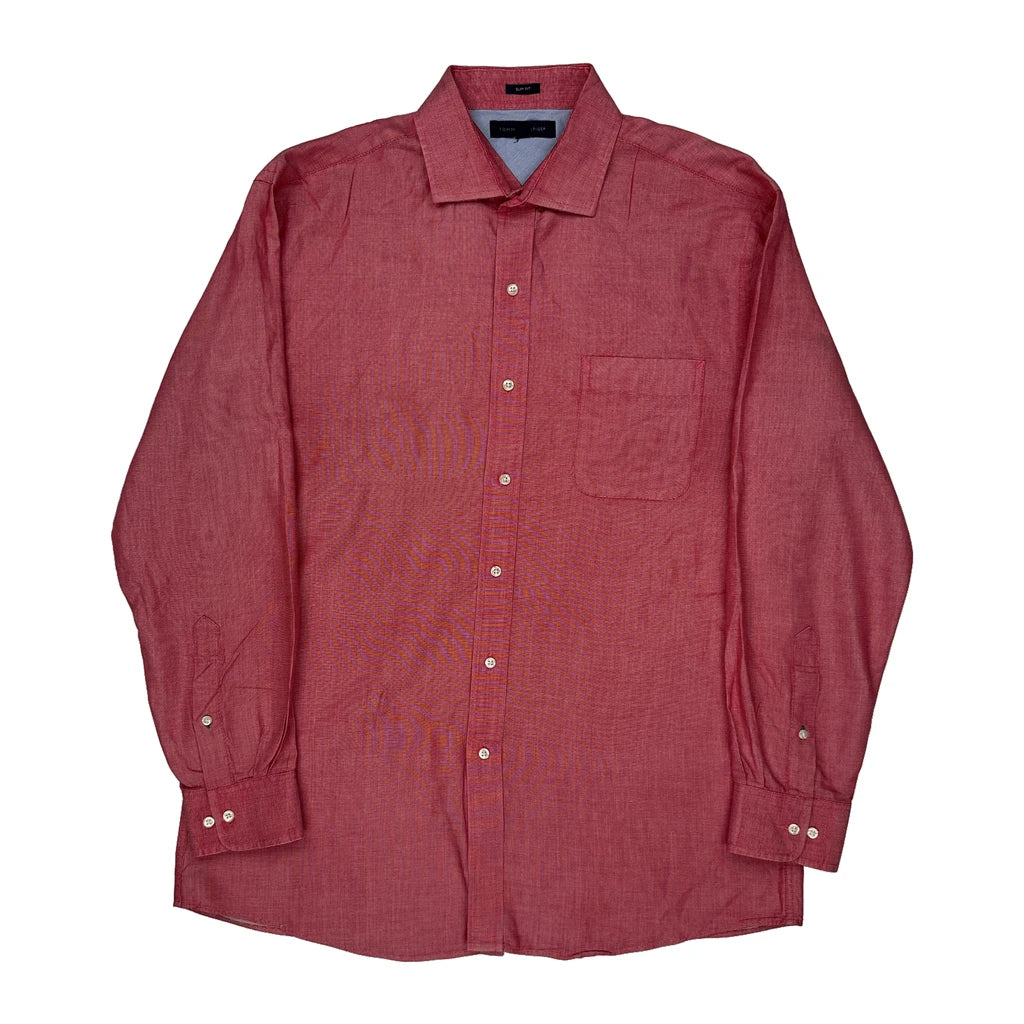 Tommy Hilfiger Slim Fit Shirt - Large Red Cotton