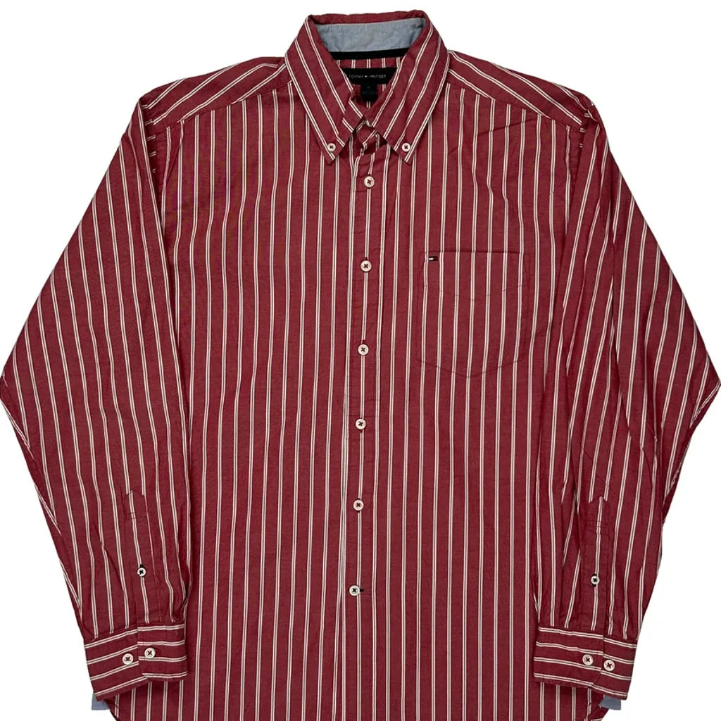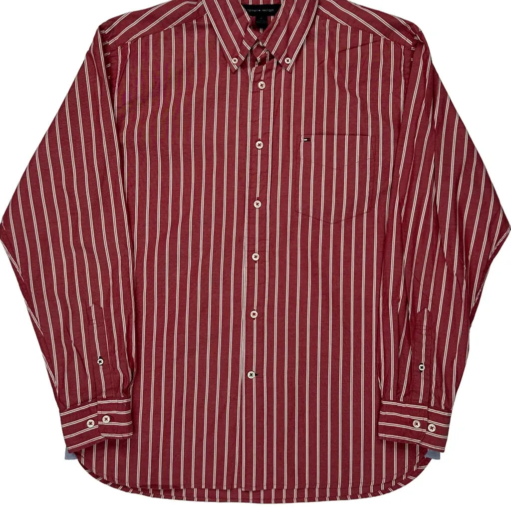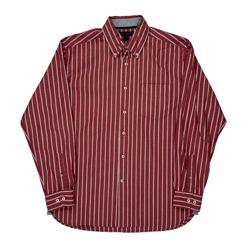 Tommy Hilfiger Striped Shirt - Medium Red Cotton