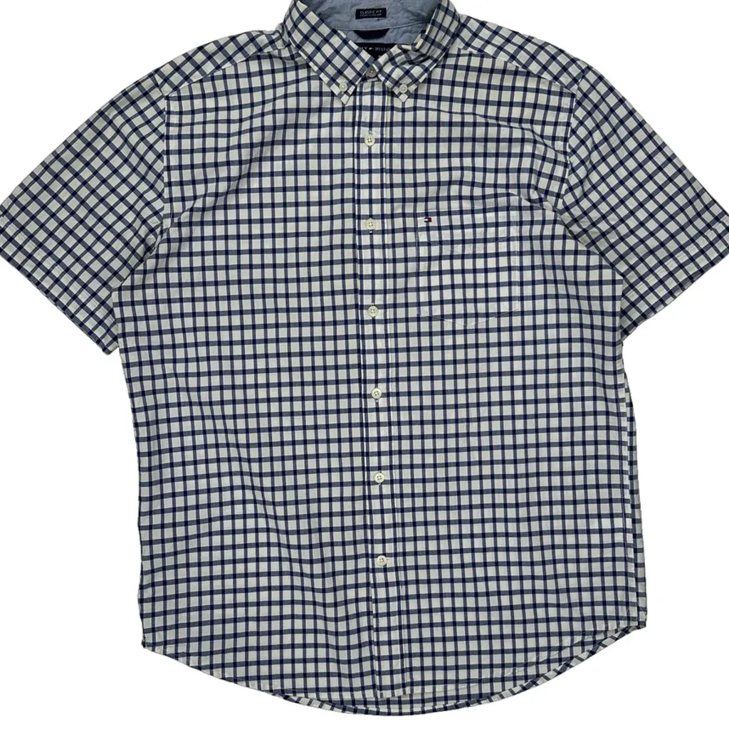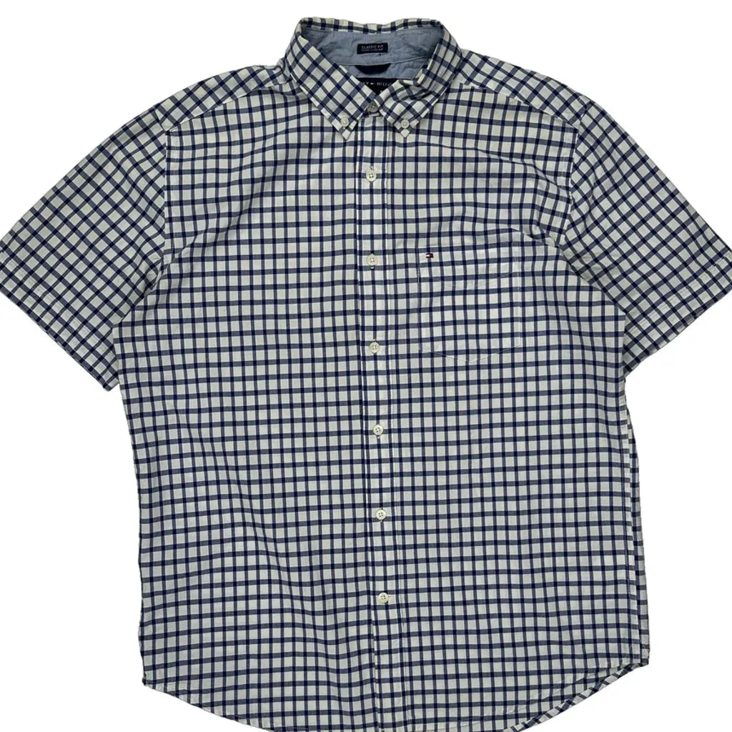 Tommy Hilfiger Checked Short Sleeve Shirt - Medium Blue Cotton