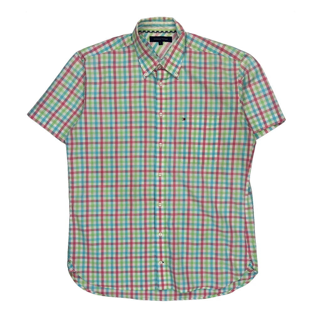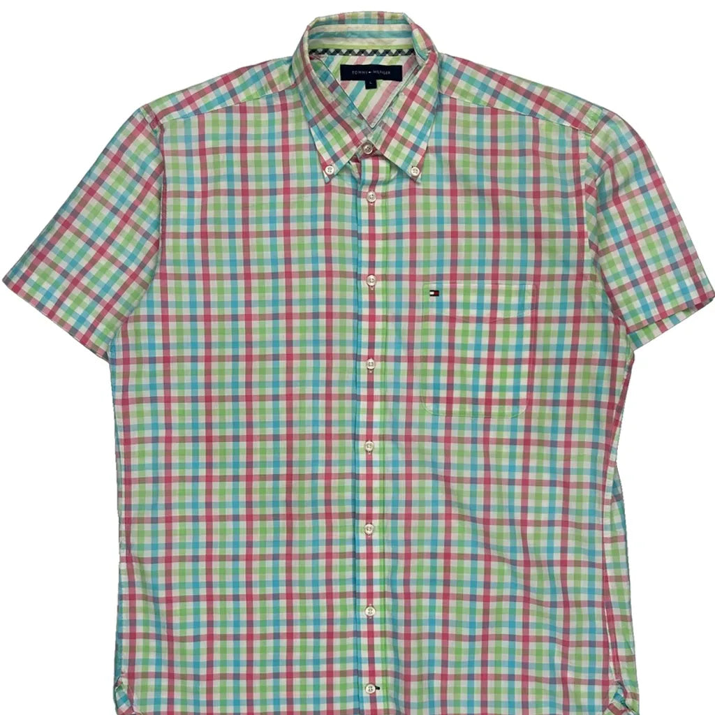 Tommy Hilfiger Checked Short Sleeve Shirt - Large Multicoloured Cotton
