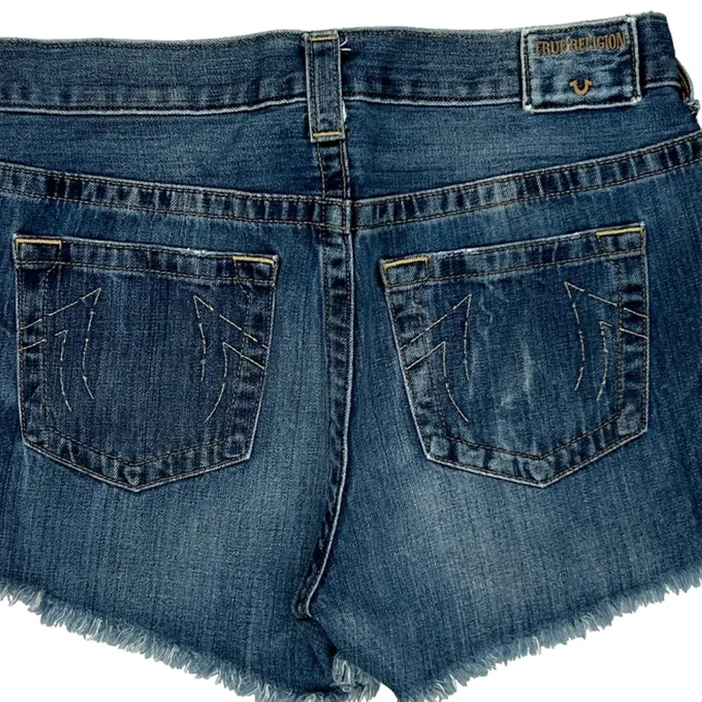 True Religion Denim Shorts - 32W UK 12 Blue Cotton