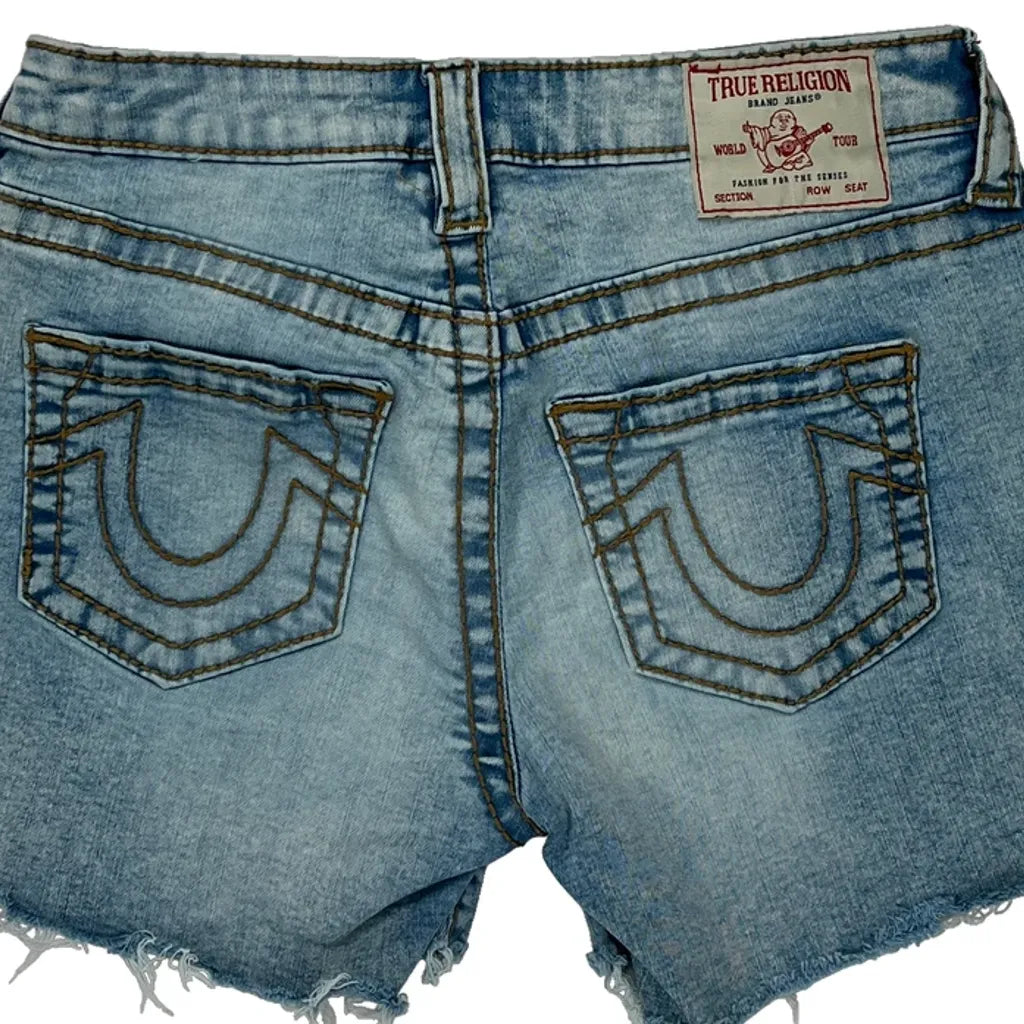 True Religion Denim Shorts - 28W UK 8 Light Wash Denim