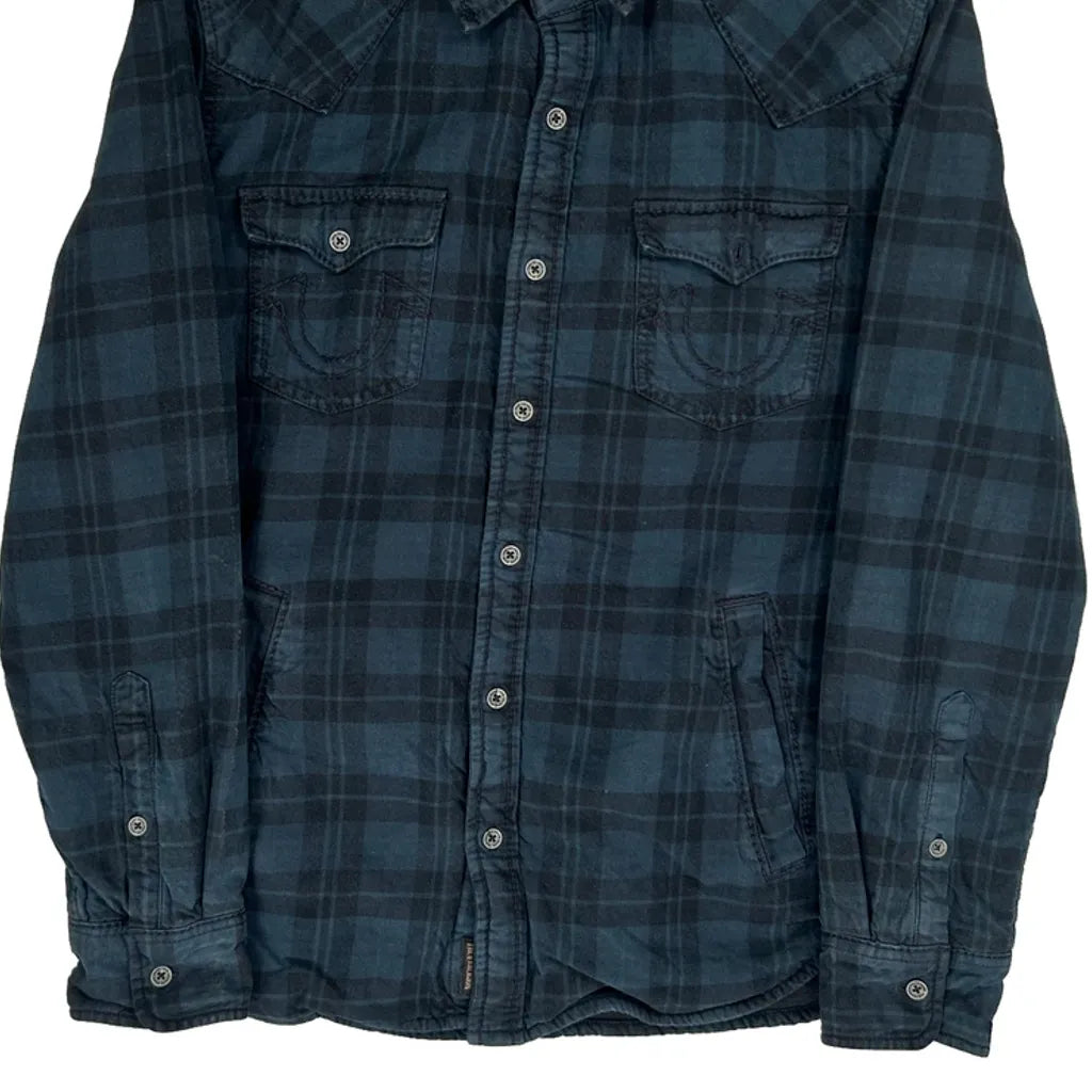 True Religion Checked Flannel Shirt - Small Blue Cotton