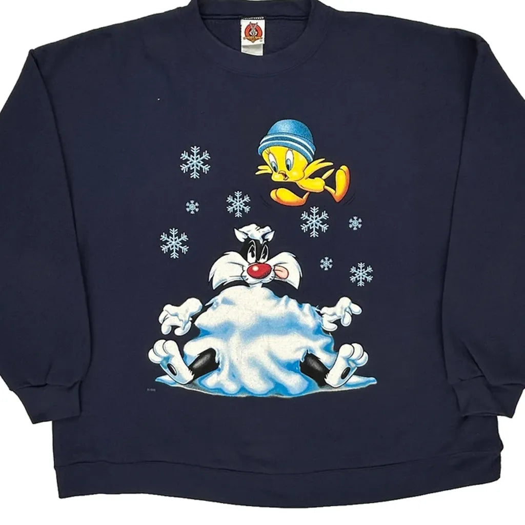 Tweety And Sylvester Looney Tunes Sweatshirt - Large Navy Cotton Blend