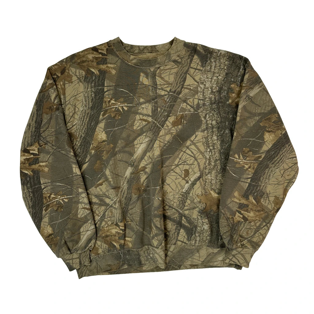 Unbranded Camo Sweatshirt - 2XL Green Cotton Blend