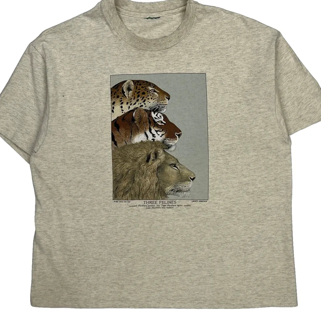 Graphic T-Shirt With Three Feline Heads Illustration