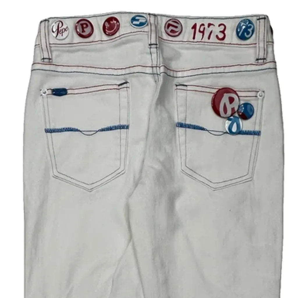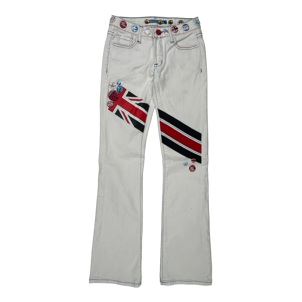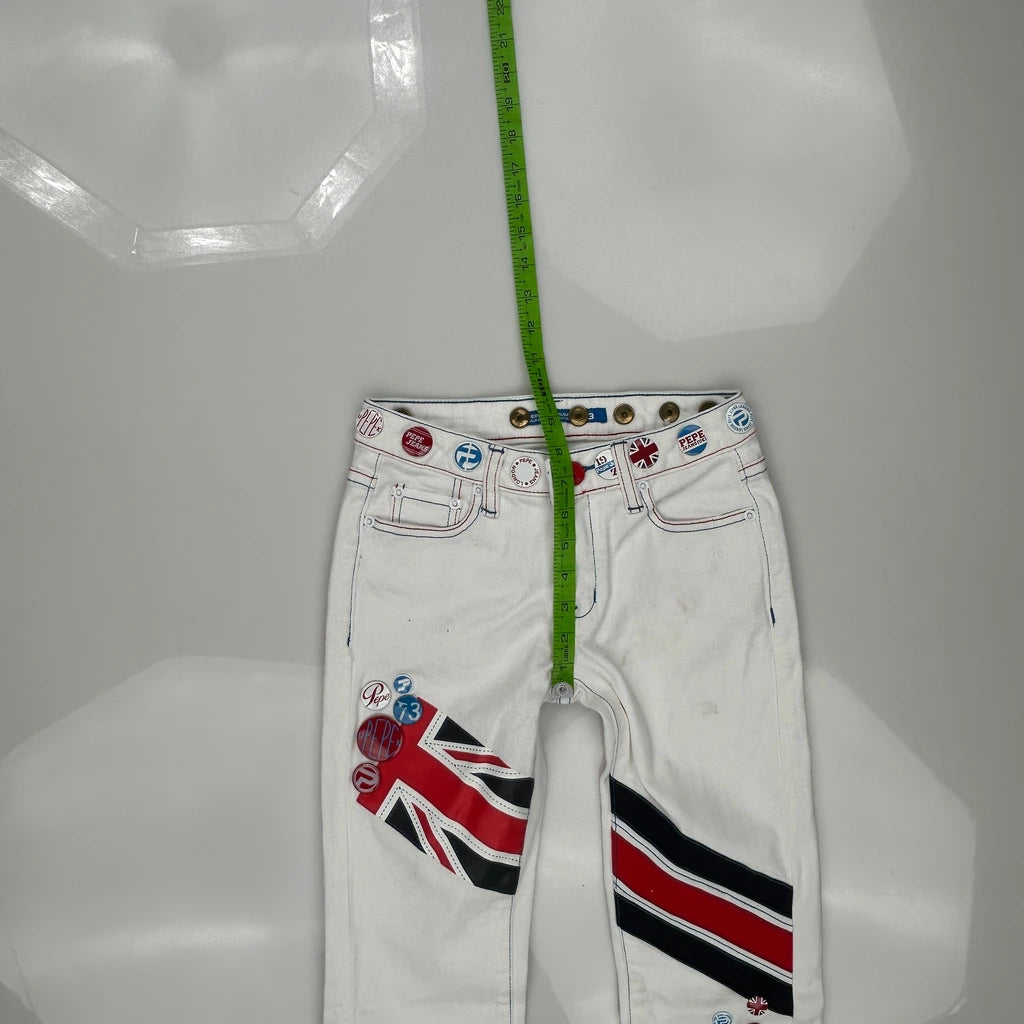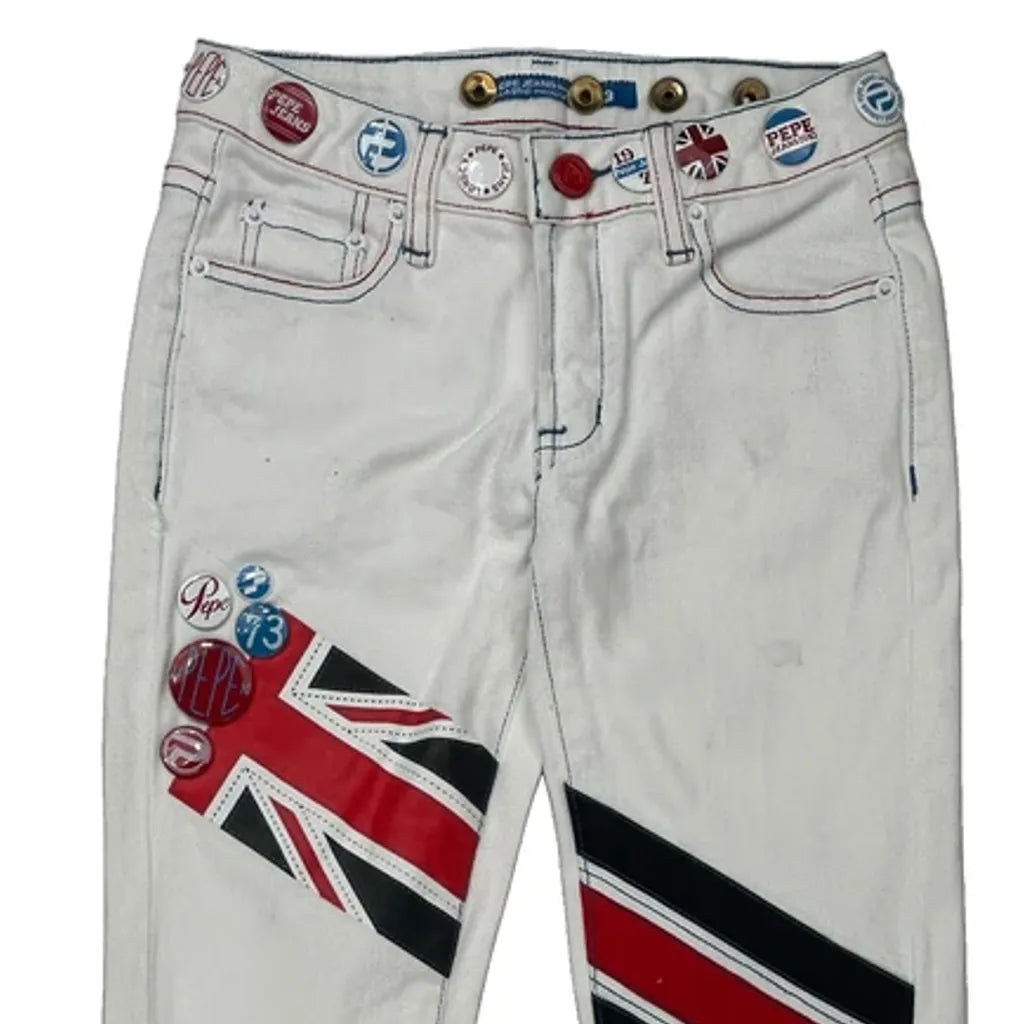 Union Jack Flag Design Pepe Jeans Jeans, fit a UK size 4 with a 23″ Waist.