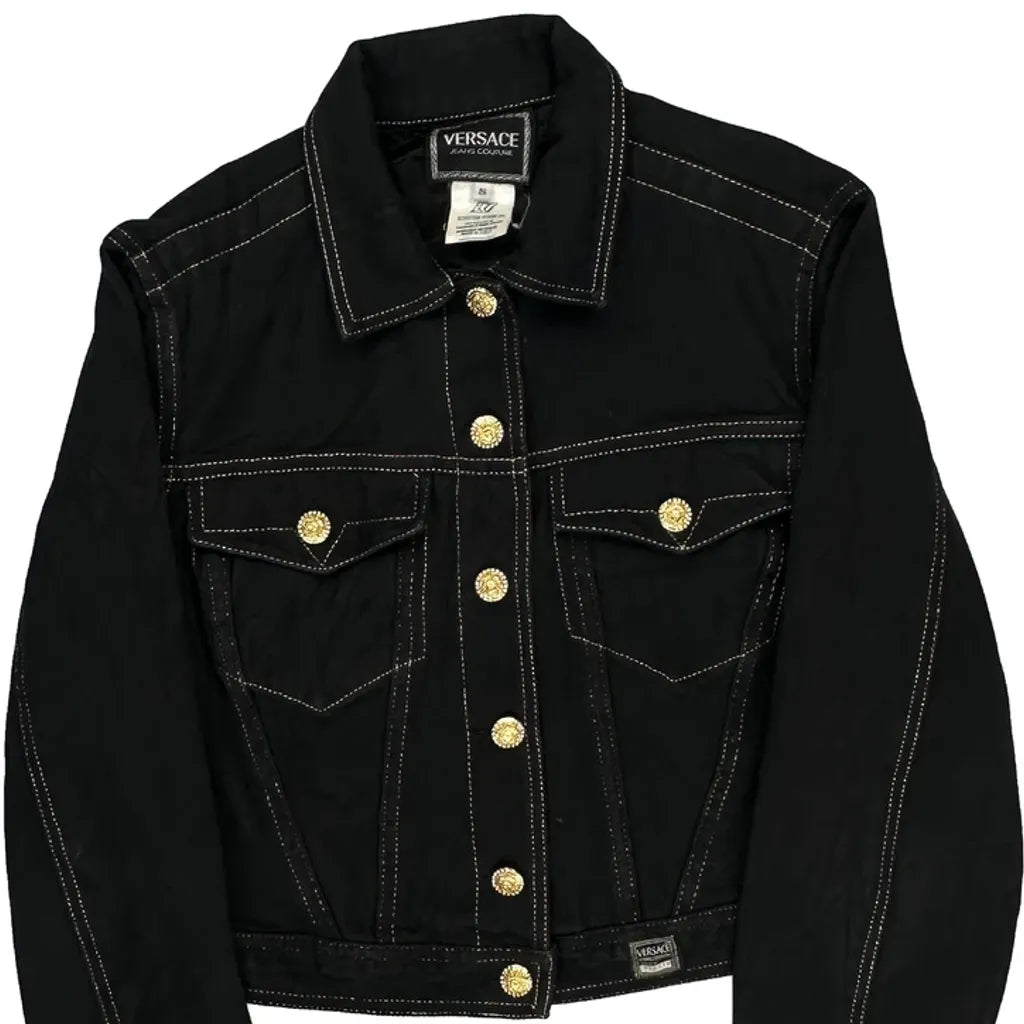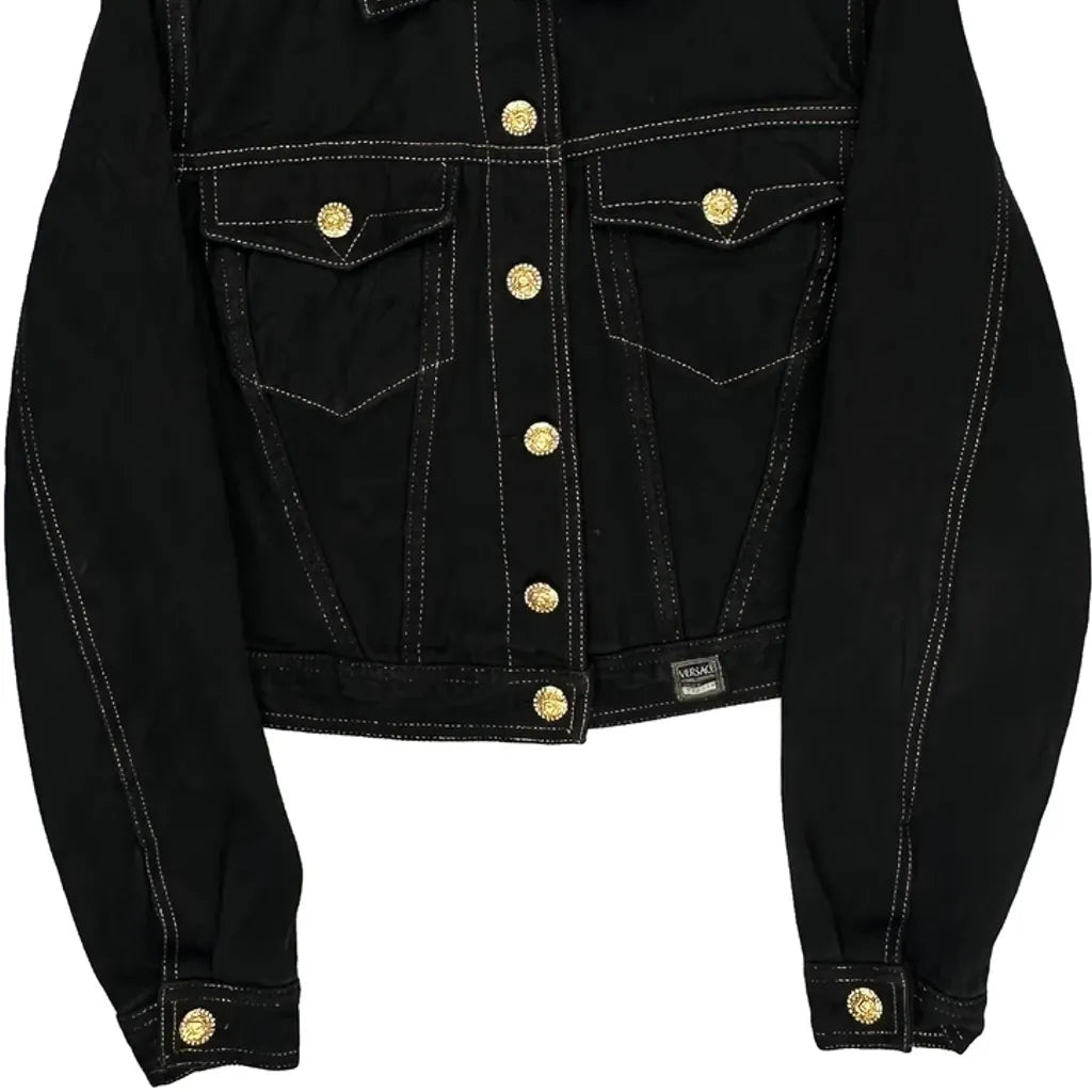 Versace Jeans Couture Contrast Stitch Denim Jacket - Small Black Cotton